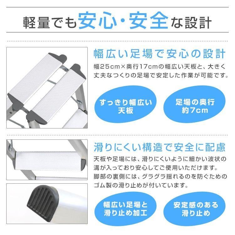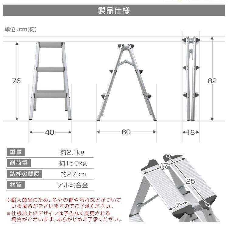 | 一家に一台あると便利! 照明器具の交換や、高い位置になる棚から物を取り出すときに便利な折りたたみステップ台です。 持ち手がついて安心!最上段まで上れますよ♪ とても軽くて持ち運びがラクラク♪ 開くだけですぐに使える♪ こんなときに大活躍♪ ↓↓↓↓ ・エアコン掃除に ・車の洗車に ・電球や電灯交換に ・撮影スタンド用に ・高い所の窓拭きに ・食器棚の上棚の収納に ・壁に時計など飾るときに 脚立があると何かと便利です。 一家に一台いかがですか(^^)? 【商品仕様】 サイズ:(約)幅180mm×奥行400mm×高さ820mm 重量:(約)2.1kg 耐荷重:(約)150kg 素材:アルミ合金 【注意事項】 ・海外製品で、簡易梱包での輸入のため風防に擦れや多少の小キズなどがある場合がございますが、商品自体には問題ありませんのでご了承下さい。 ・仕様・デザインは改良のため予告なく変更することがあります。 (アルミ製 軽い 折り畳み 人気 おすすめ 安い 送料無料 WEIWEIホールディングス) |