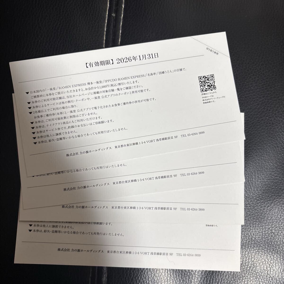 力の源ホールディングス 一風堂 株主様優待券 有効期限2026年1月31日まで