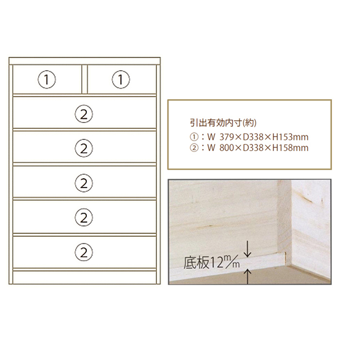 長引き出し:幅 79×奥行 33×高さ 14.5 (cm)