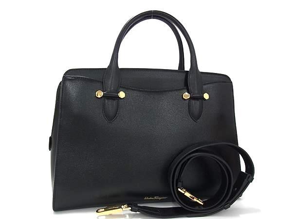 1円 ■美品■ Salvatore Ferragamo フェラガモ レザー 2WAY ハンドバッグ ショルダー 斜め掛け レディース ブラック系 FP5787