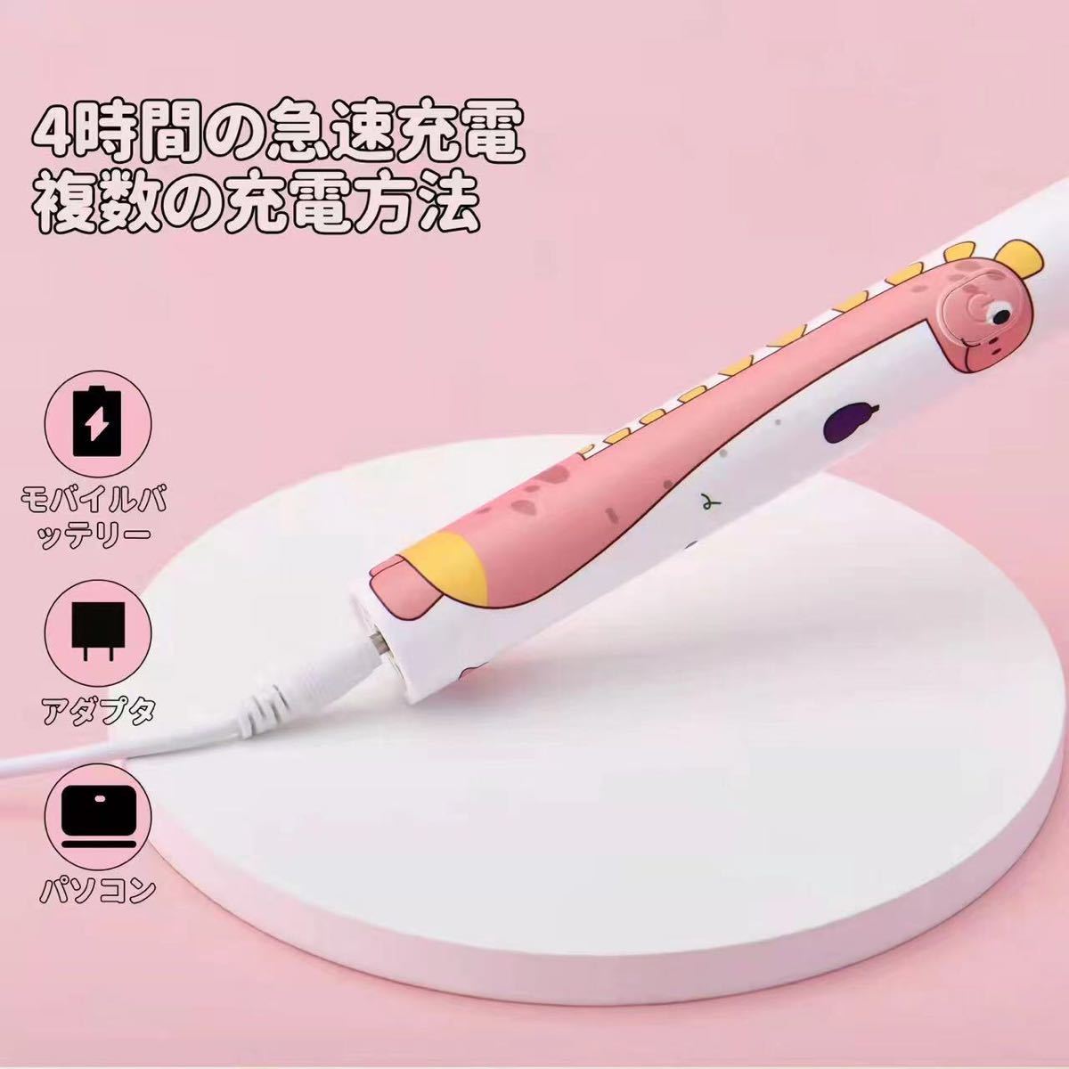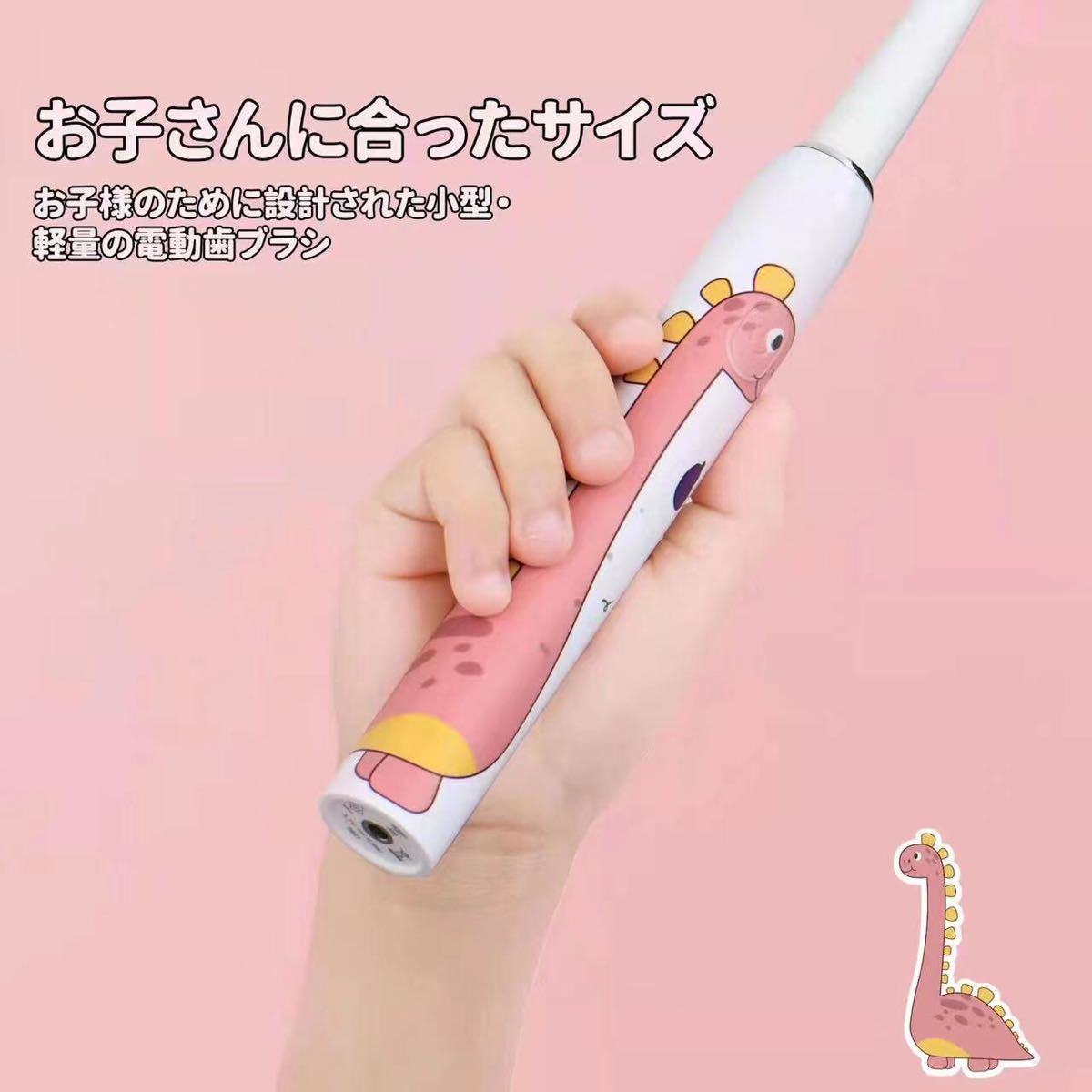 電動歯ブラシ 子供用 かわいい恐竜柄 usb充電式 多機能 2分間オートタイマー 音波歯ブラシ 替えブラシヘッド2本