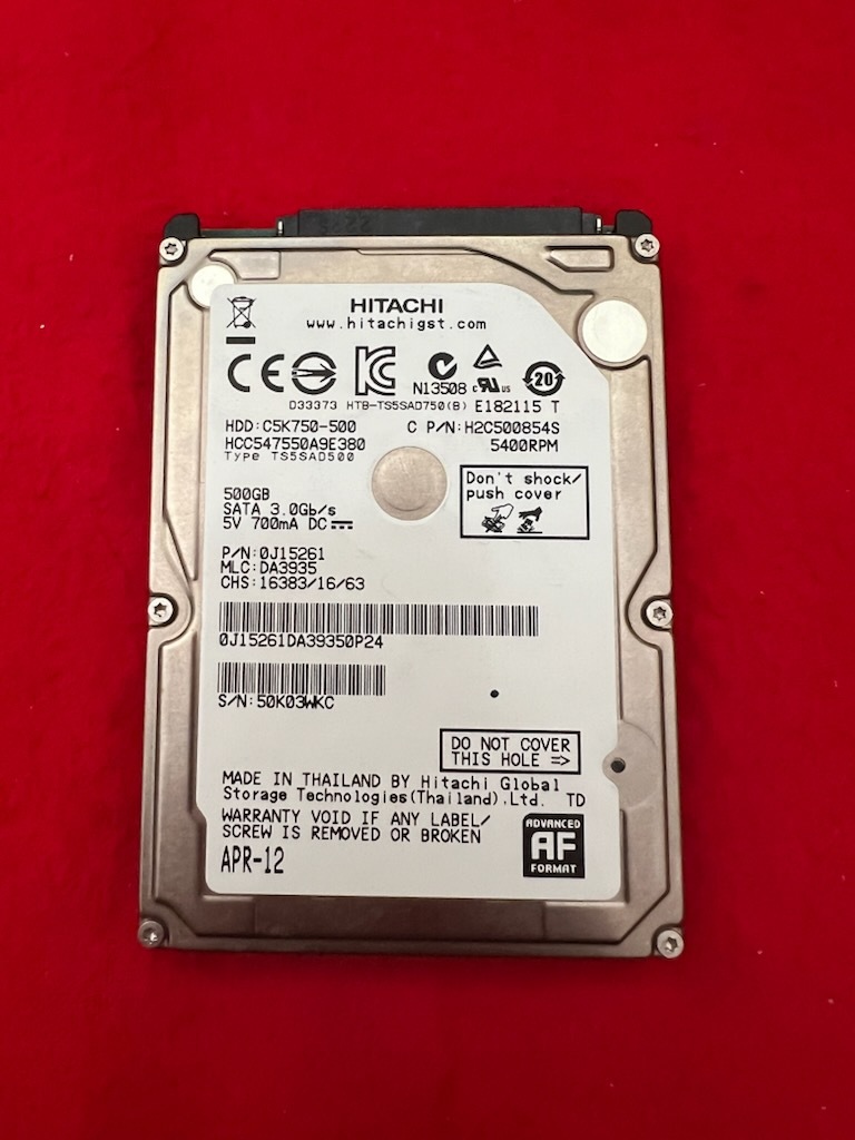 不良返金保証 ハードディスク HITACHI C5K750-500 HCC547550A9E380 500GB (Y112)