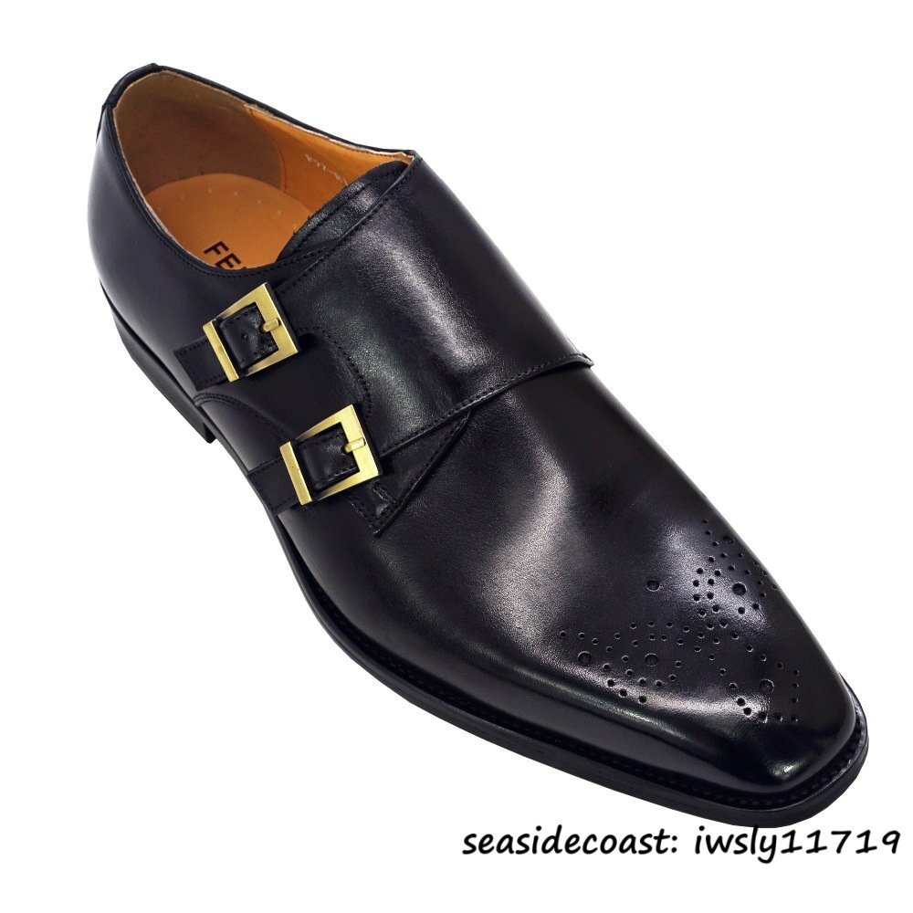 定価9万超◆超希少 本革 ビジネスシューズ メンズ 職人手作り ダブルモンクストラップ レザーシューズ 牛革 紳士靴 革靴 ブラック 24.5cm
