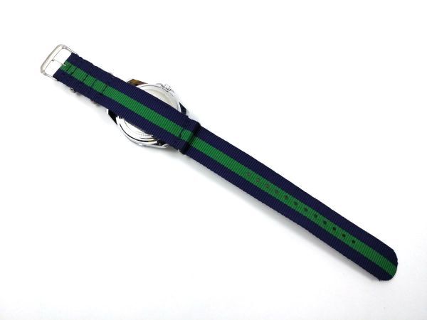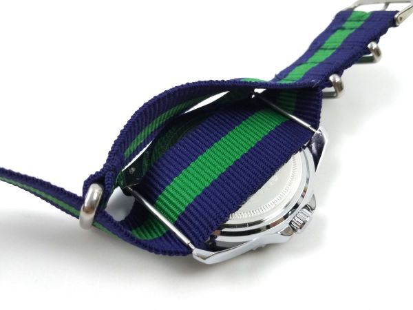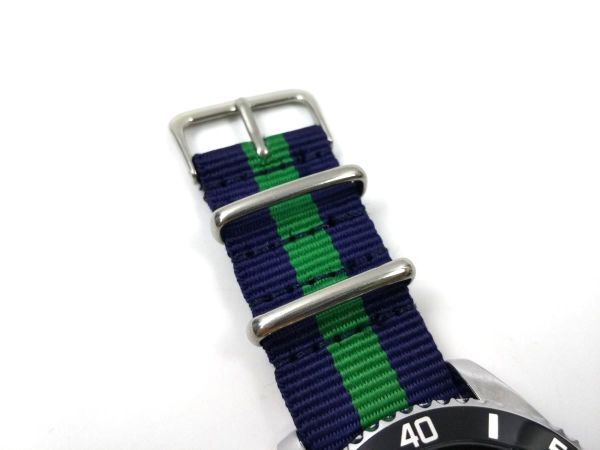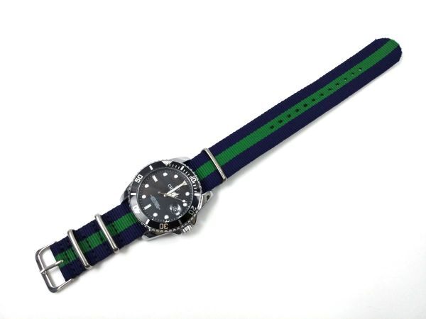 ナイロン製ミリタリーストラップ natoタイプ 布ベルト 腕時計 ネイビーXグリーン ストライプ 22mm