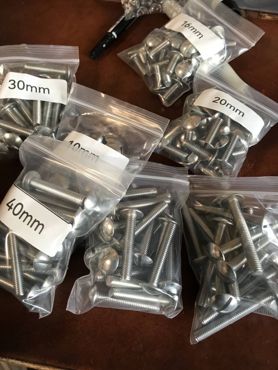 ステンレス製 マイナス頭(大き目の低頭タイプ)丸頭ボルト  M6x10,16,20,25,30,35,40,45㎜の8種から選択
