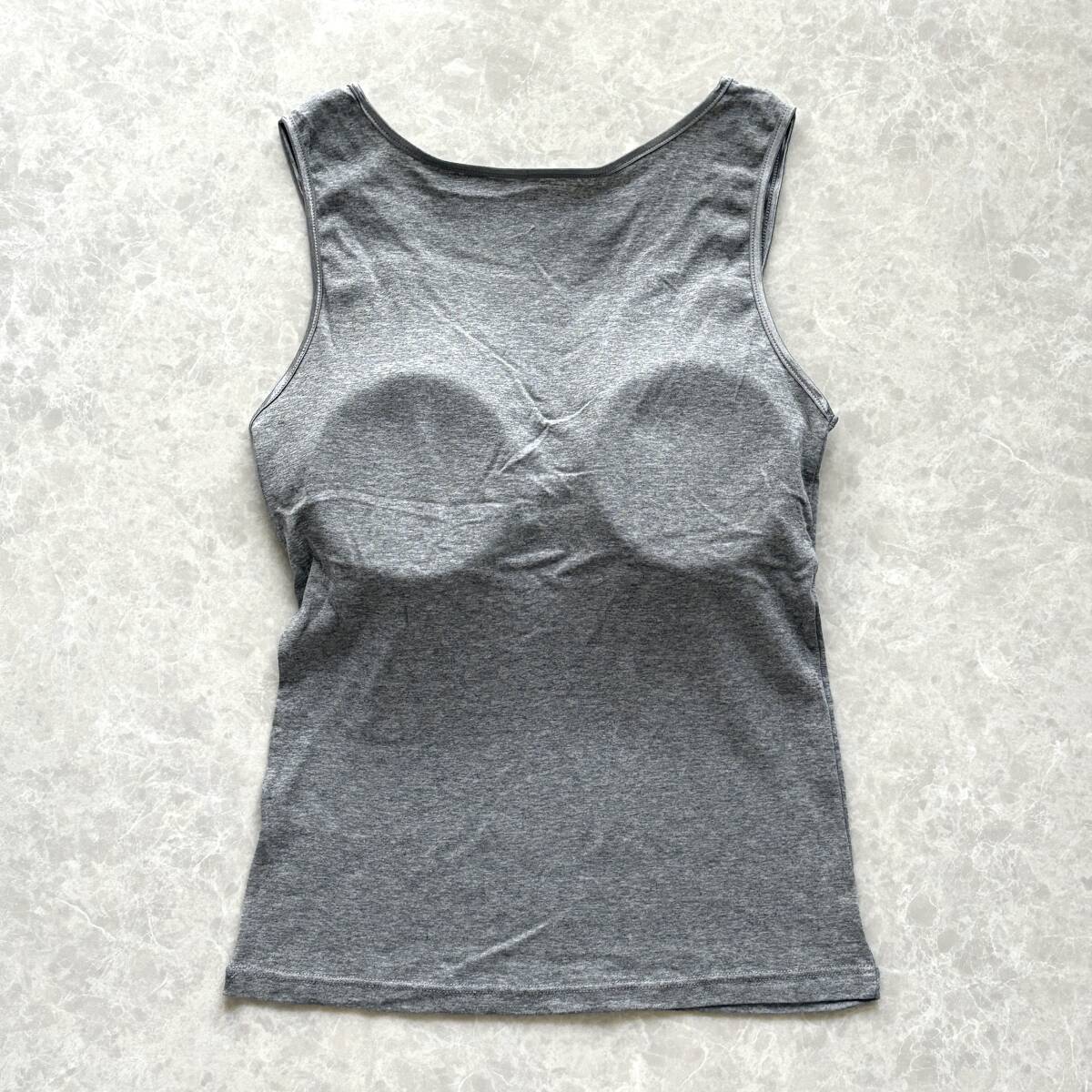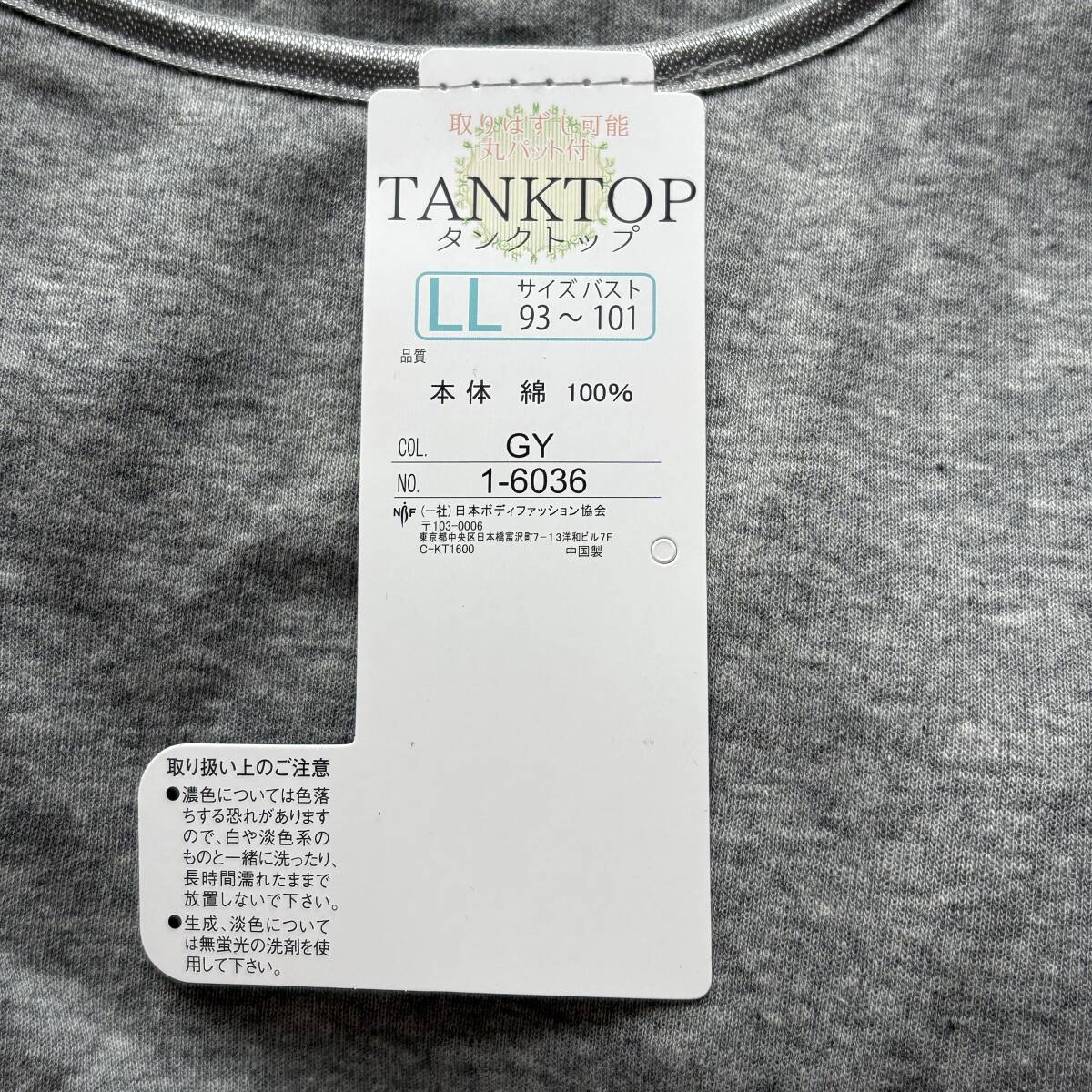 レディース LLサイズ グレー 綿100% カップ付き タンクトップ ブラトップ インナー ノンワイヤー 肌着 ルームウェア ブラジャー スポブラ