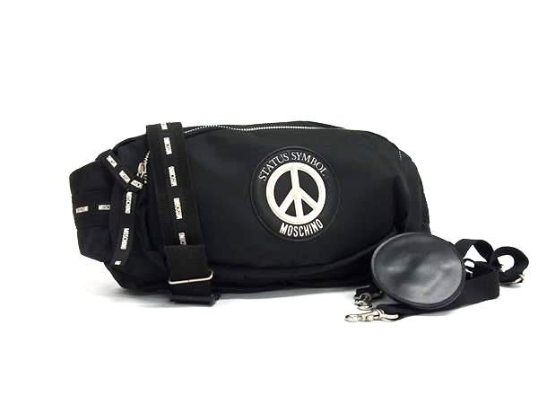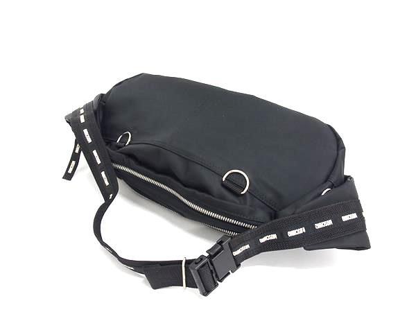 1円 ■美品■ MOSCHINO モスキーノ ナイロン×レザー 2WAY ボディバッグ ウエストバッグ ショルダー ブラック系×ホワイト系 FP5433