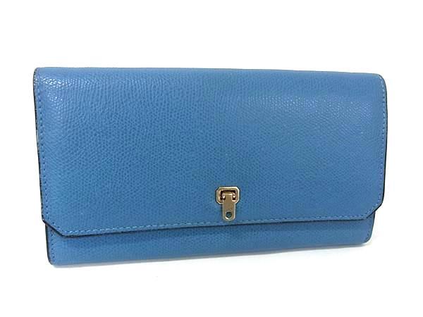 1円 Valextra ヴァレクストラ ブレラ レザー 二つ折り 長財布 ウォレット 札入れ 小銭入れ レディース メンズ ブルー系 BP4898