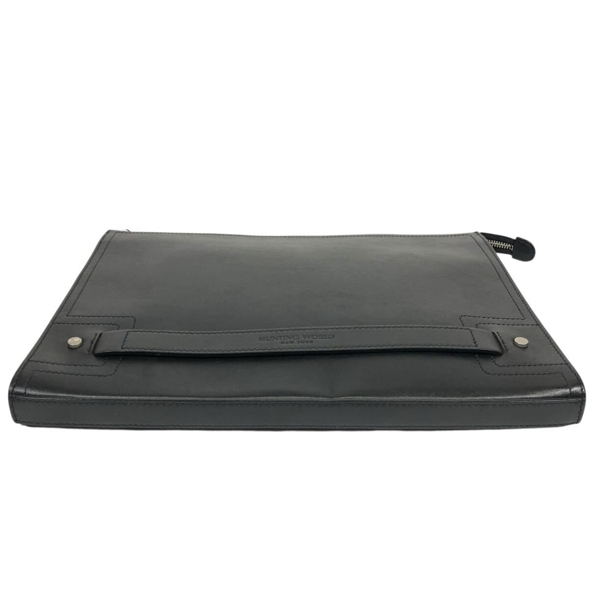 美品【ハンティングワールド】本物 HUNTING WORLD クラッチバッグ ロゴモチーフ 書類かばん セカンドバッグ ビジネスバッグ レザー メンズ