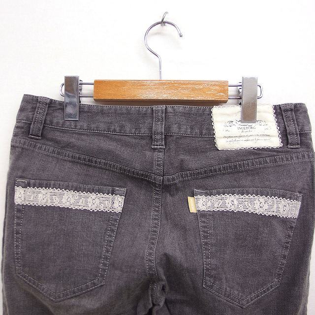 インゲボルグ INGEBORG レース付きポケット デニム ジーンズ ストレート 11 グレー 灰 /FT4 レディース