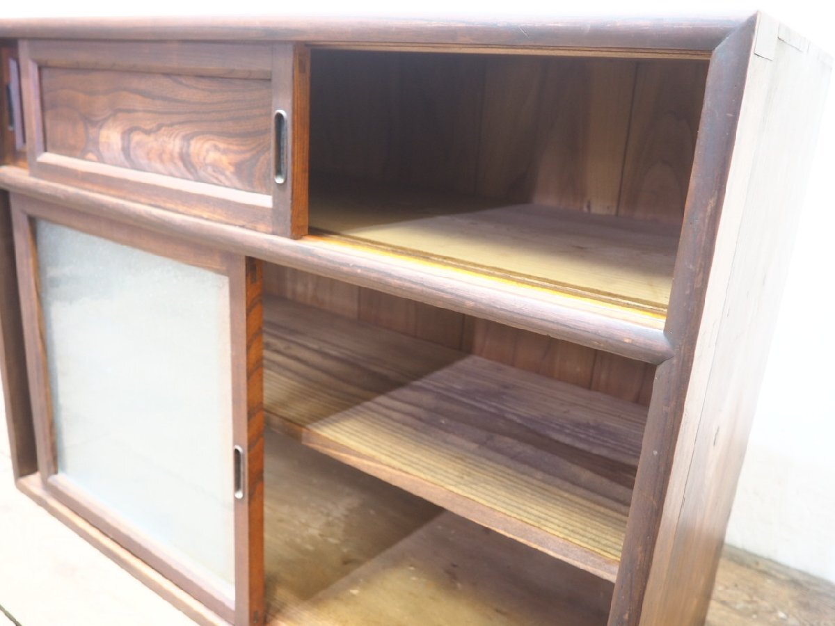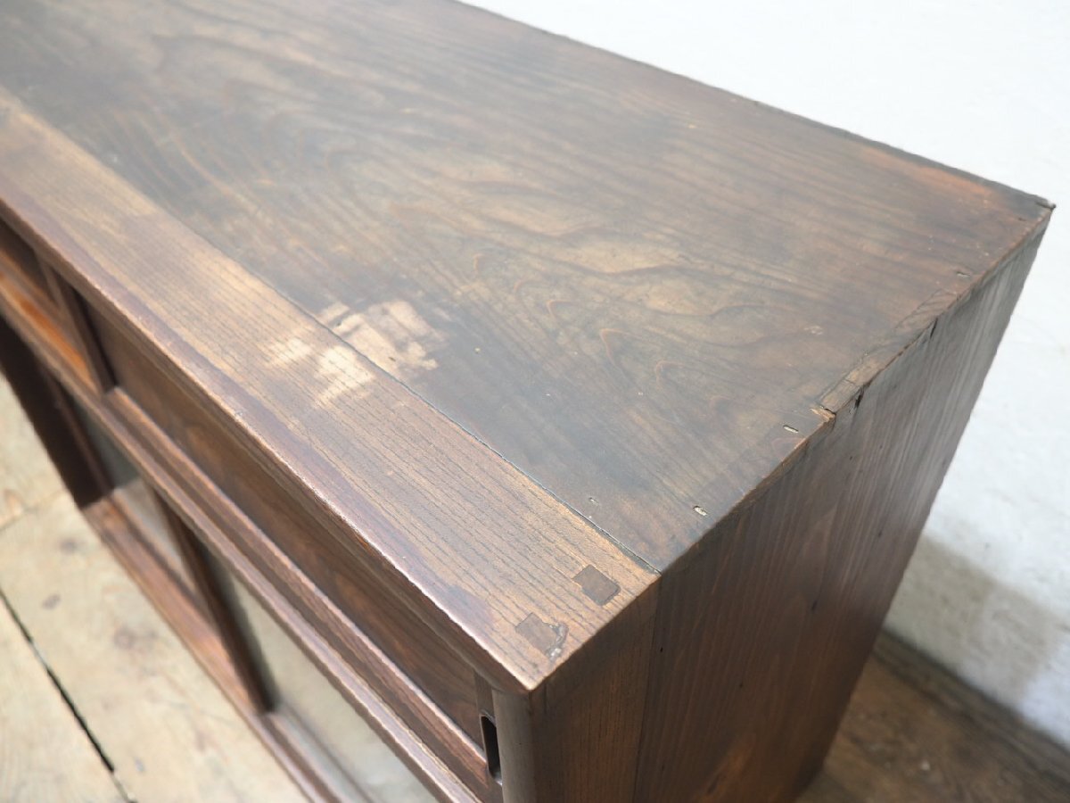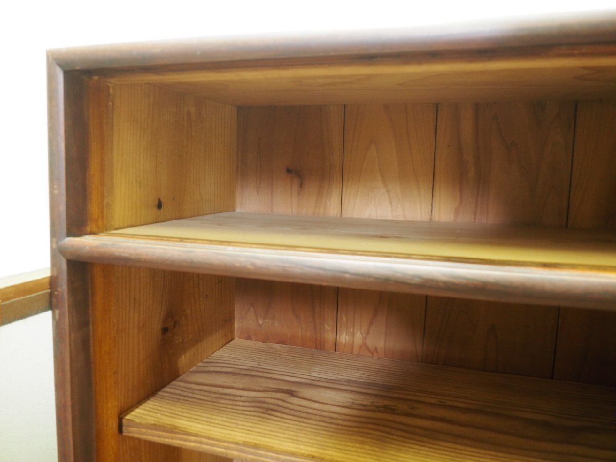 タ荷W1399◆H66cm×W90,5cm◆アンティーク◆前欅の重厚な古い木製収納棚◆ケヤキ 飾り棚 茶箪笥 和タンス ガラスケース レトロM(ヤC)松