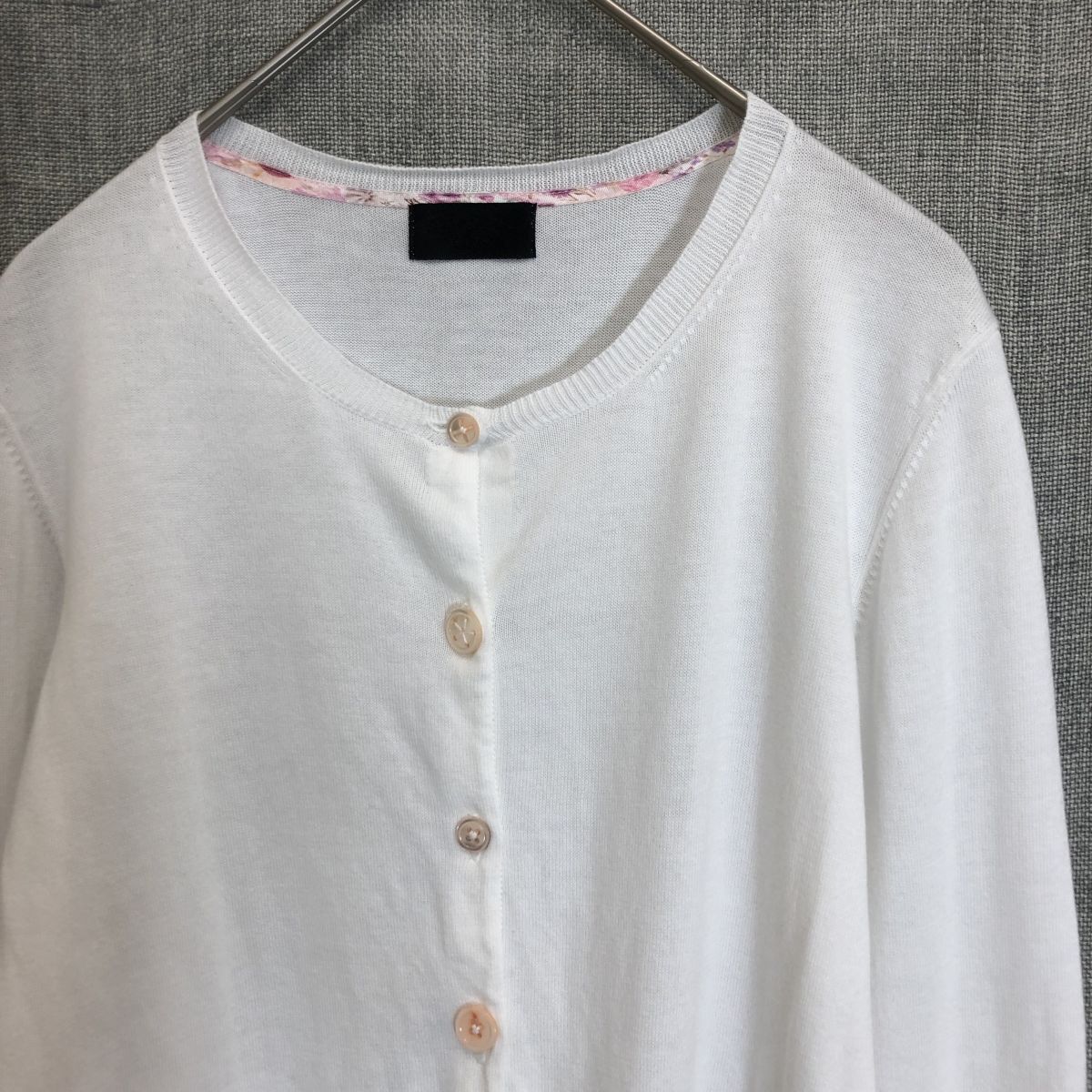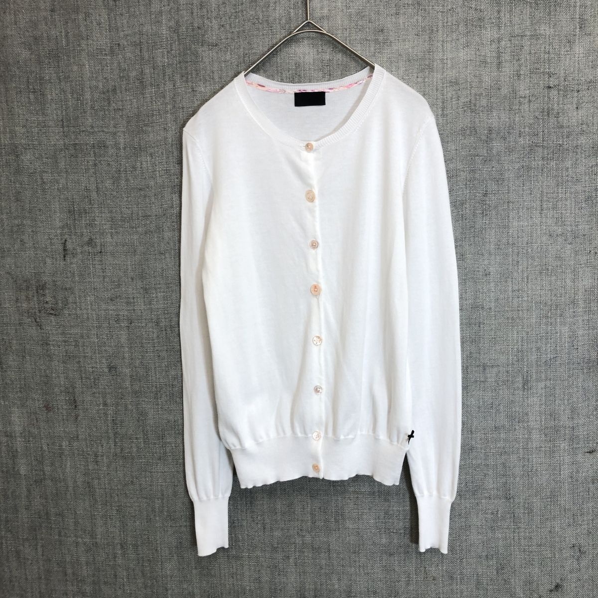 2K1883-Y◆Paul Smith BLACK ポールスミスブラック 長袖ニットカーディガン ハイゲージ ラウンドネック レディース ◆sizeM ホワイト 綿