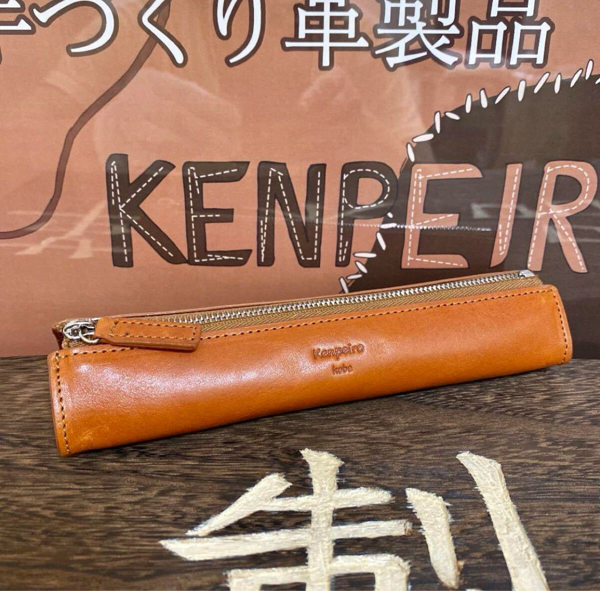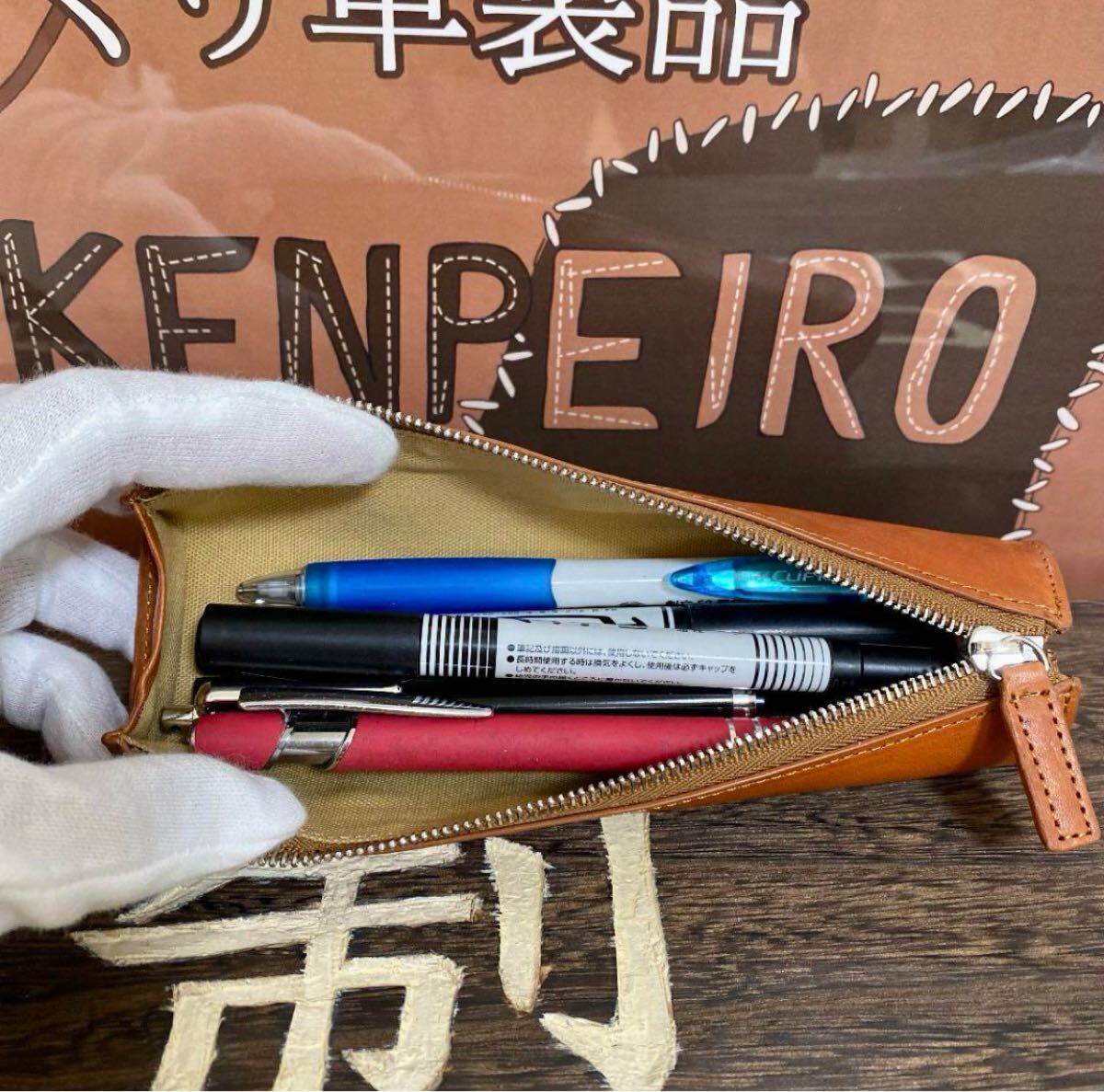 ●シュリンクレザーの柔らかい手触りが手にフィットするなペンケース。