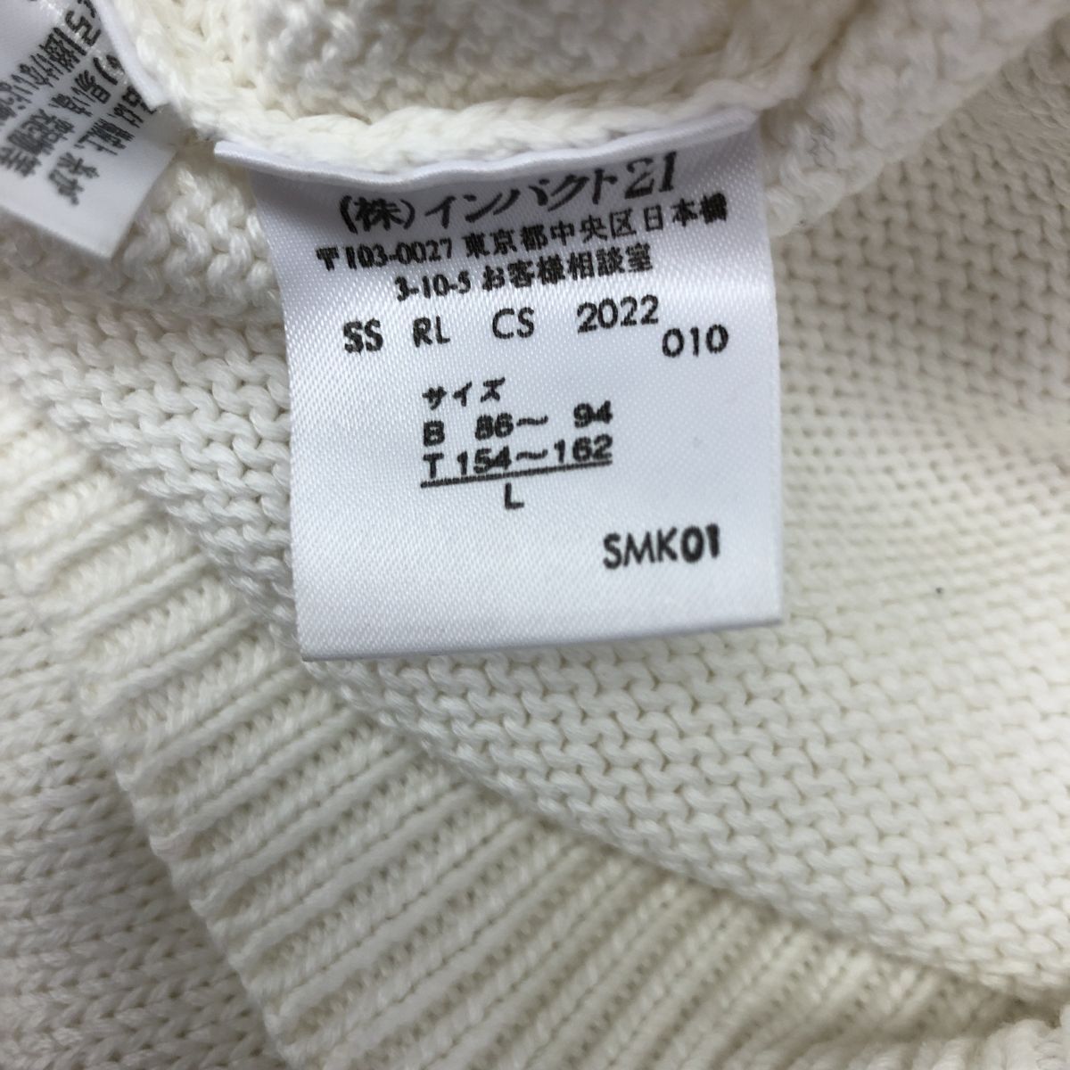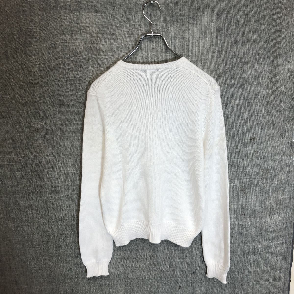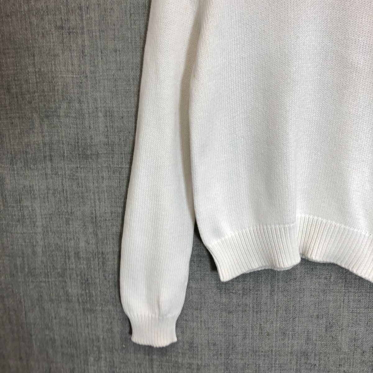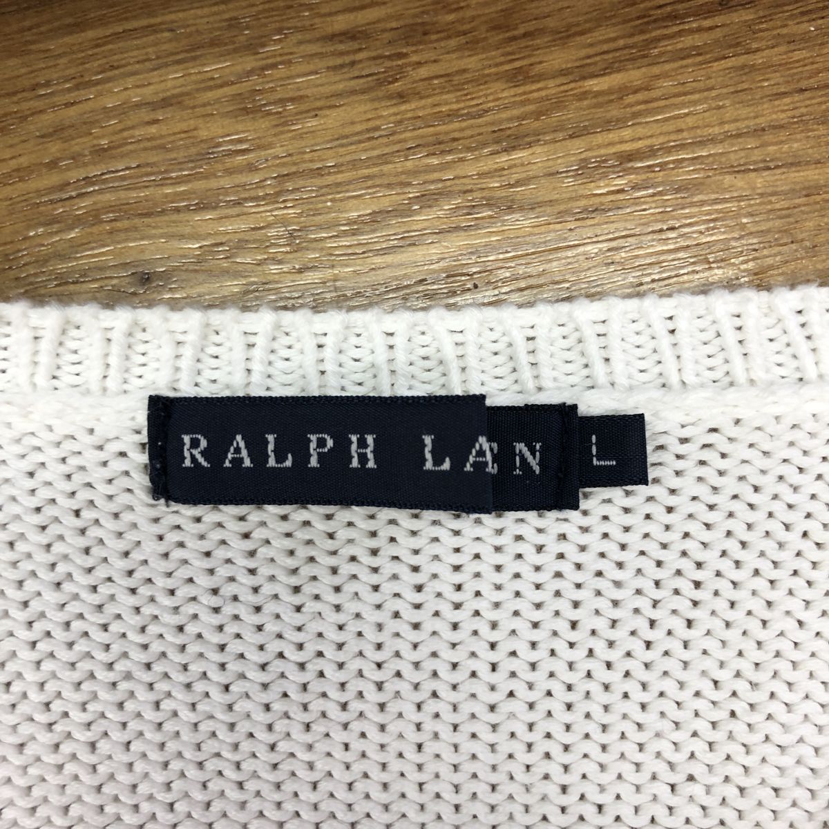 2K1664-O-N◆RALPH LAUREN ラルフローレン 長袖ニット セーター Vネック 刺繍ロゴ ワンポイント ◆sizeL ホワイト コットン