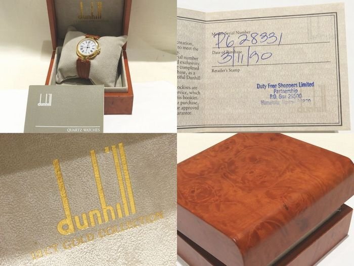 dunhill ダンヒル ミレニアム メンズ クォーツ 時計 ☆ P6 28331 デイト ゴールドカラー × ブラウン 革ベルト 白文字盤 ローマン ▼7I