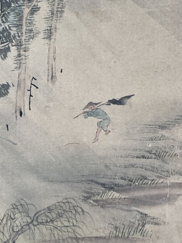 【真作】T》画僧 武田雲室上人 山水人物図 平尾竹霞箱書二重箱 K400ニk4