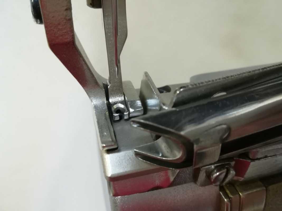 7枚目画像 : 中押さえは針落ちが見やすく、糸通りも良い様に先端をカットしてスリットを切りました。針周りがスッキリします。