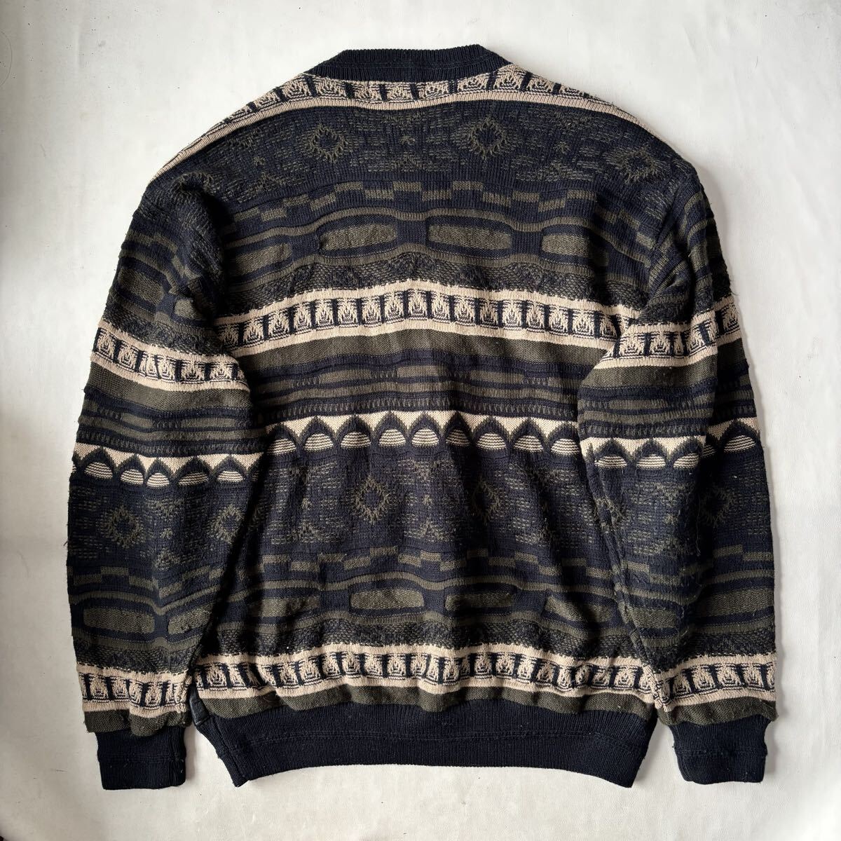 90s TRUTUS BIANCARA レザー 切り替え 3D ニット セーター L 古着 アクリル