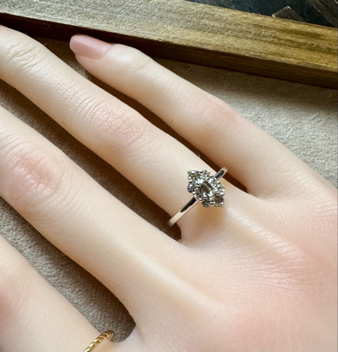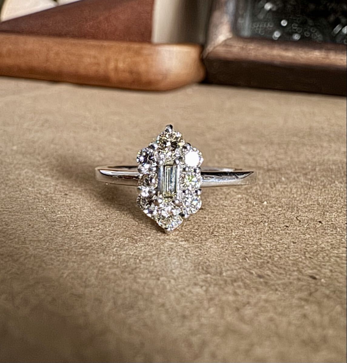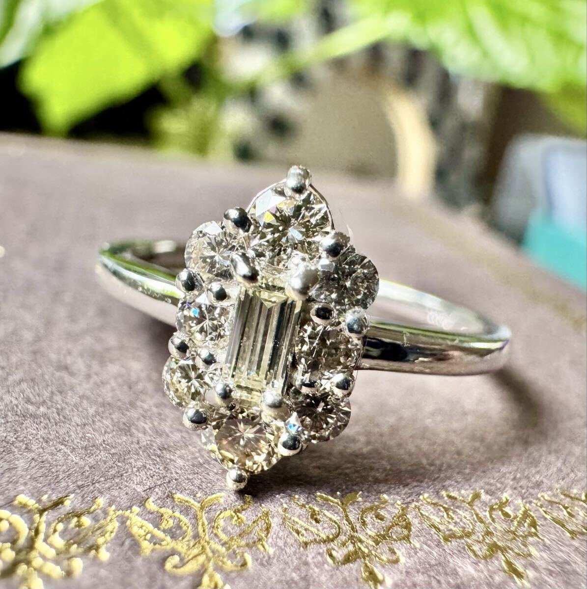 クラシック調の雰囲気漂う2種カットダイヤモンドリングです