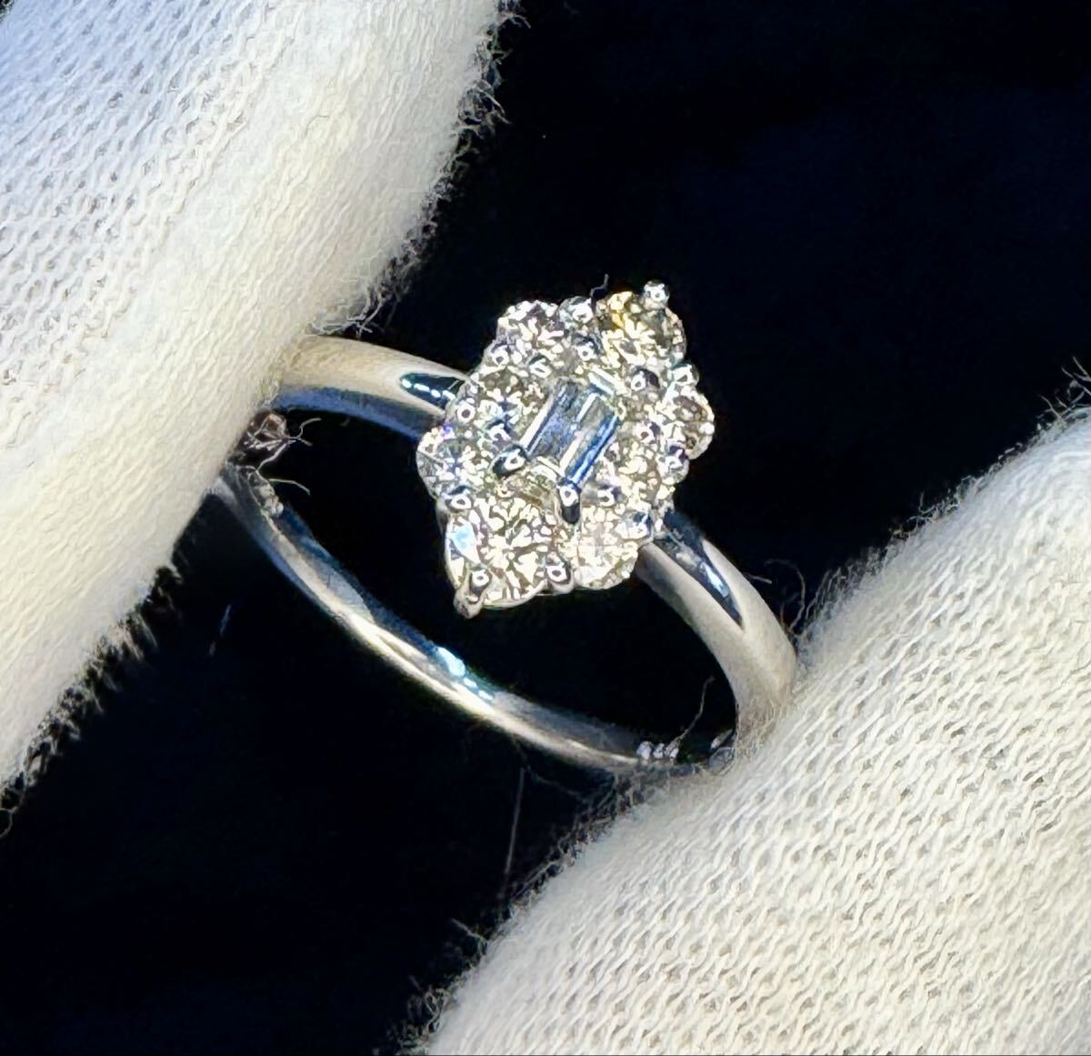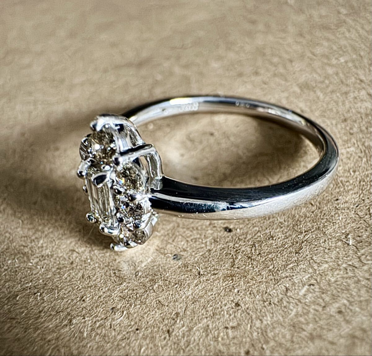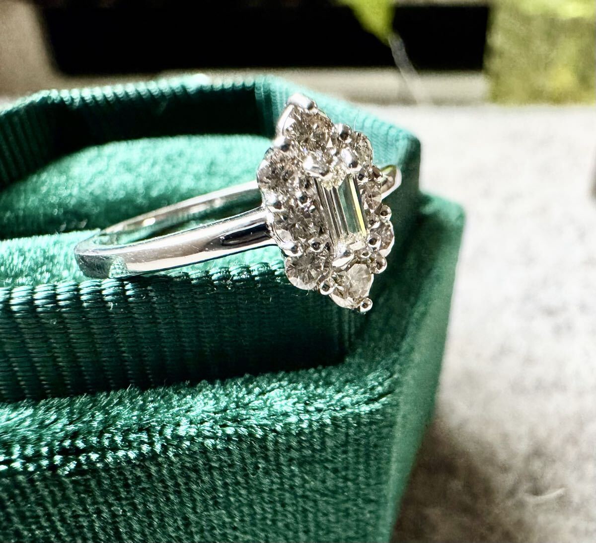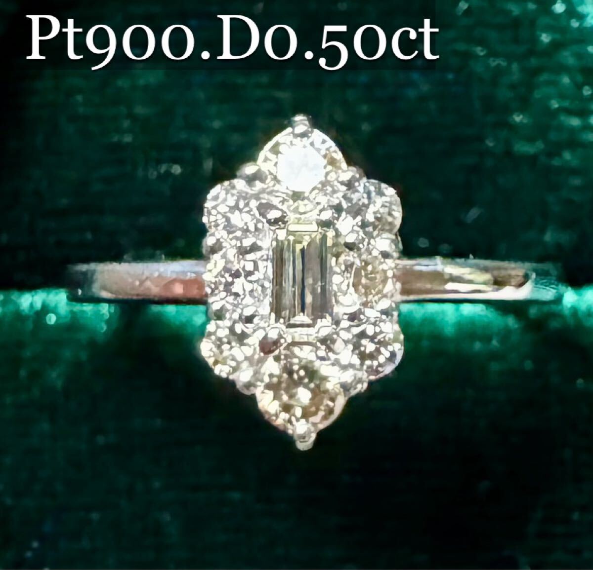 クラシック調の雰囲気漂う2種カットダイヤモンドリングです