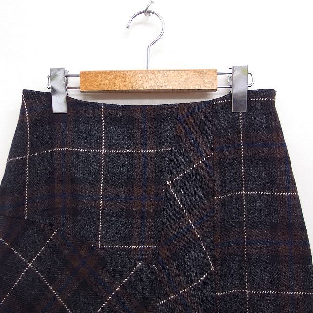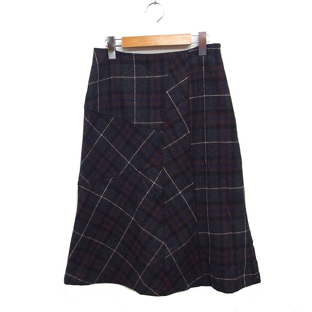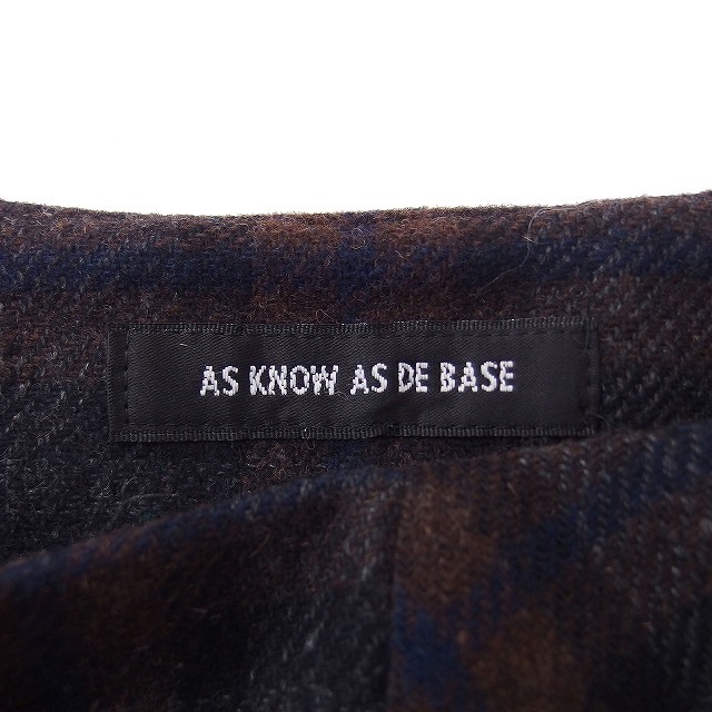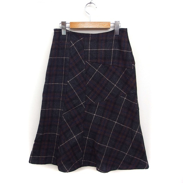 アズノウアズ ドゥバズ as know as de base チェック柄 ヘムフレア スカート ひざ丈 ウール ブラウン 茶 グレー 灰 /FT5 レディース