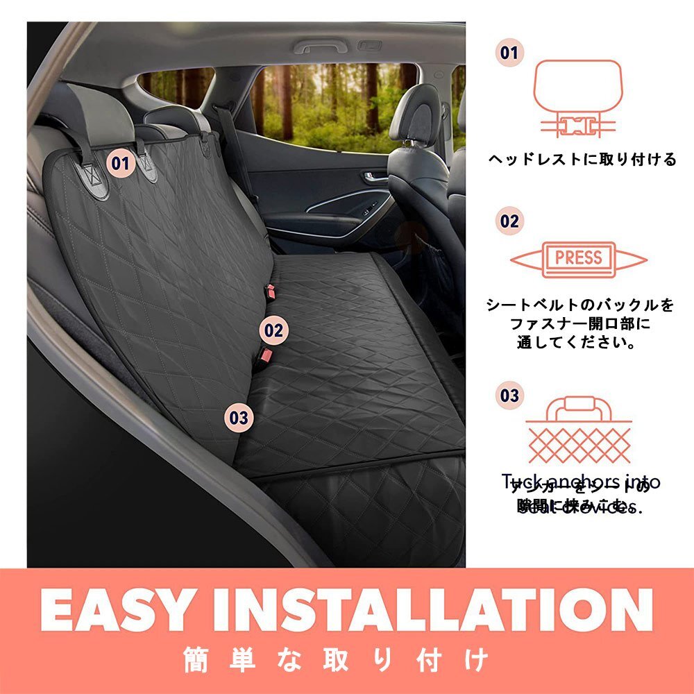 | こちらの商品は車用ペットシートです。 【高品質&高耐久】 防水、防汚加工をほどこしており、厚手構造になっているため簡単に破けたりしません。 丈夫な900Dオックスフォードクロスを5層使用しているため、分厚く、高耐久を実現しました。 【簡単取り付け】 取付方法はクリップなためらくらく装着できます! ■商品情報 サイズ:138cm×56cm×46cm | ||