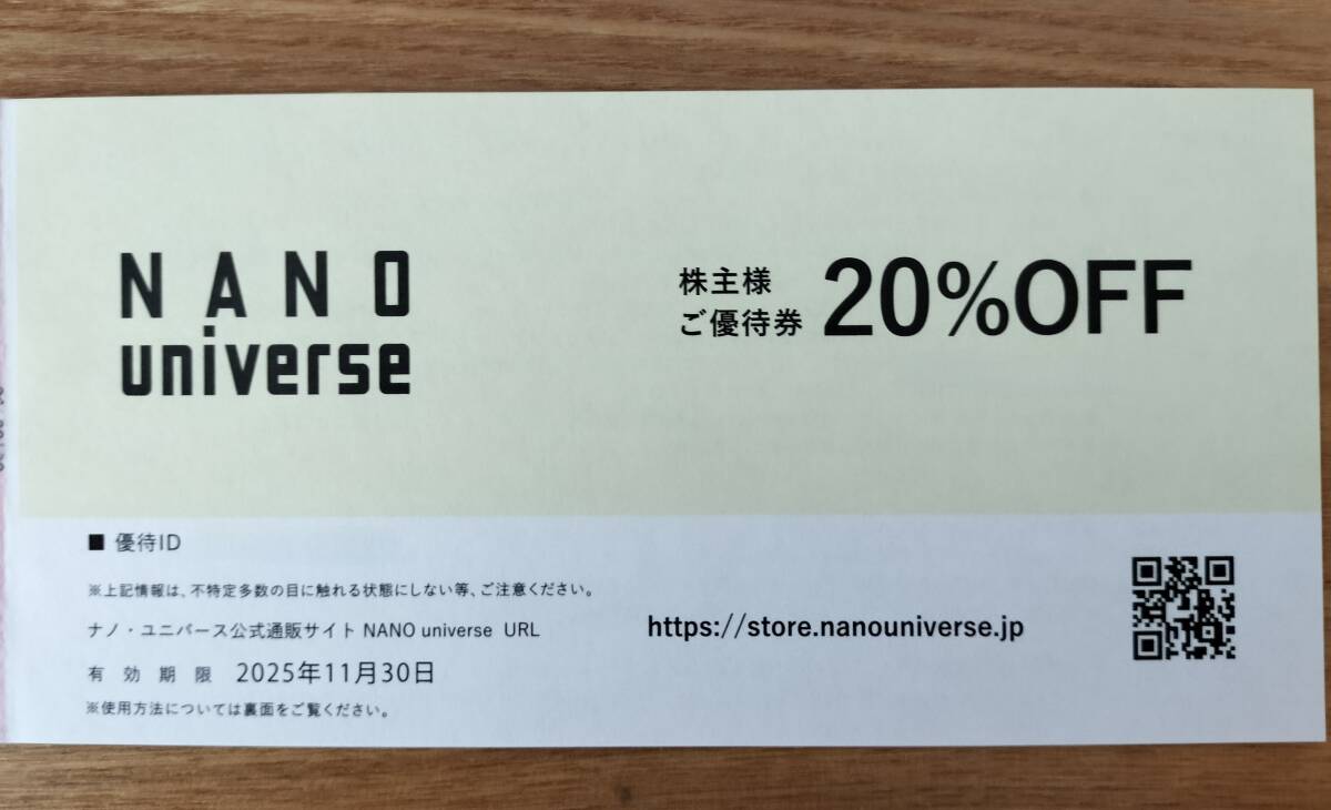 NANO universe ナノ・ユニバース 20%割引 クーポン 優待ID 有効期限:2025年11月30日 ナノユニバース