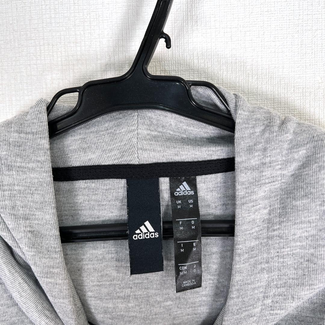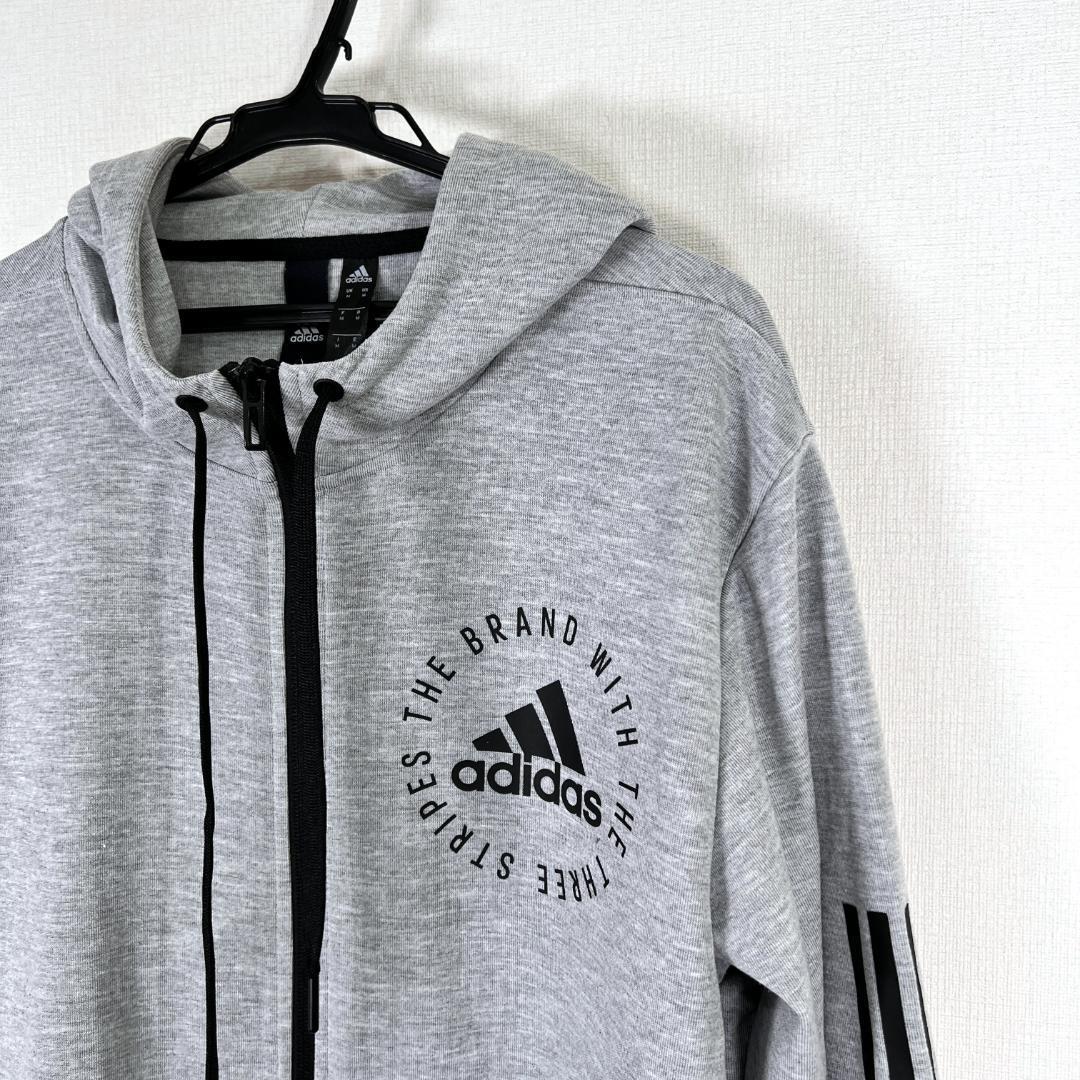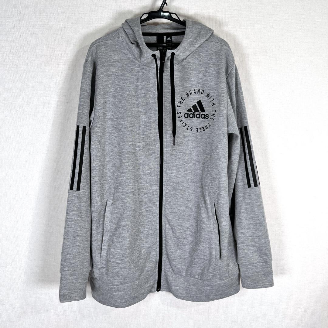 【adidas】アディダス グレー ジップアップ パーカー フード付き スウェット トップス 男性用 メンズ Oサイズ【a026】