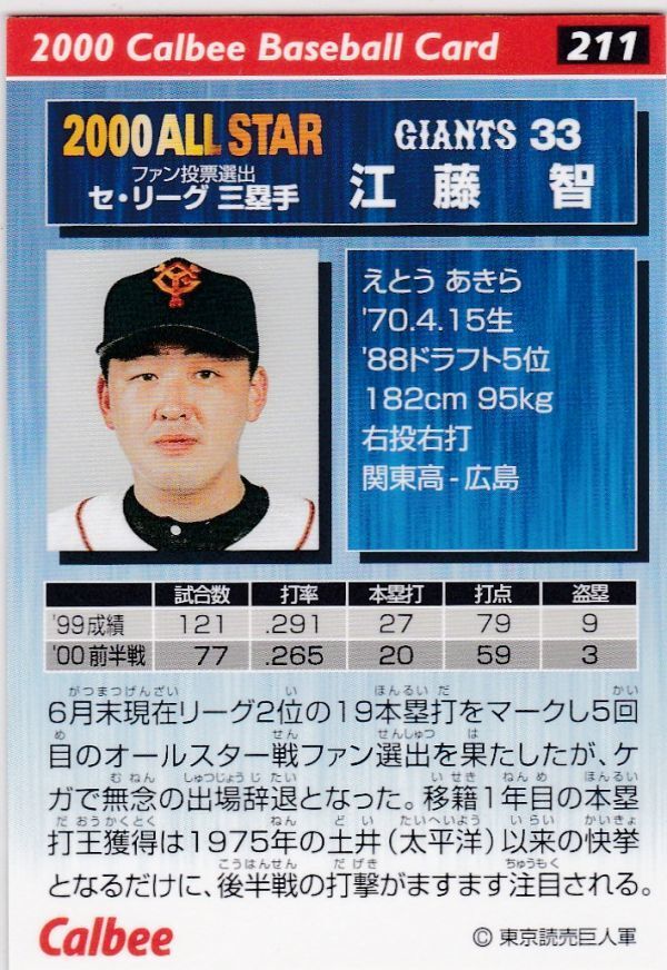 ●2000カルビー【江藤 智】 プレ版:金箔押サインパラレル:ALL STAR No.211:巨人 R2
