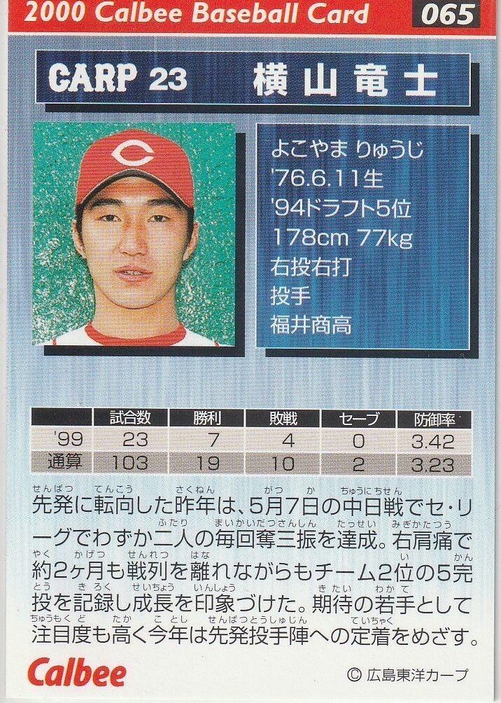 ●2000カルビー 【横山 竜士】プレ版:金箔押サインパラレル No.065:広島