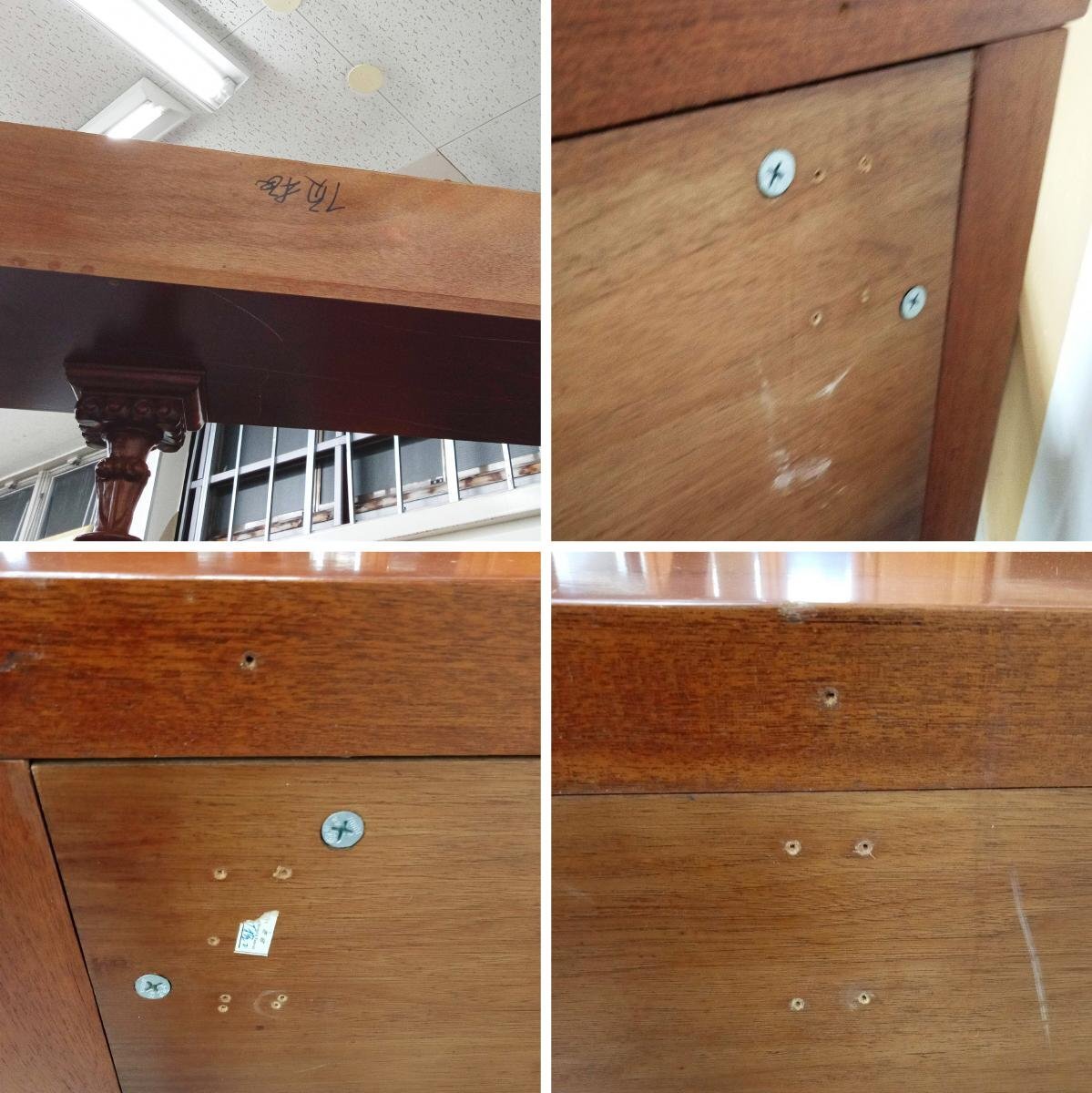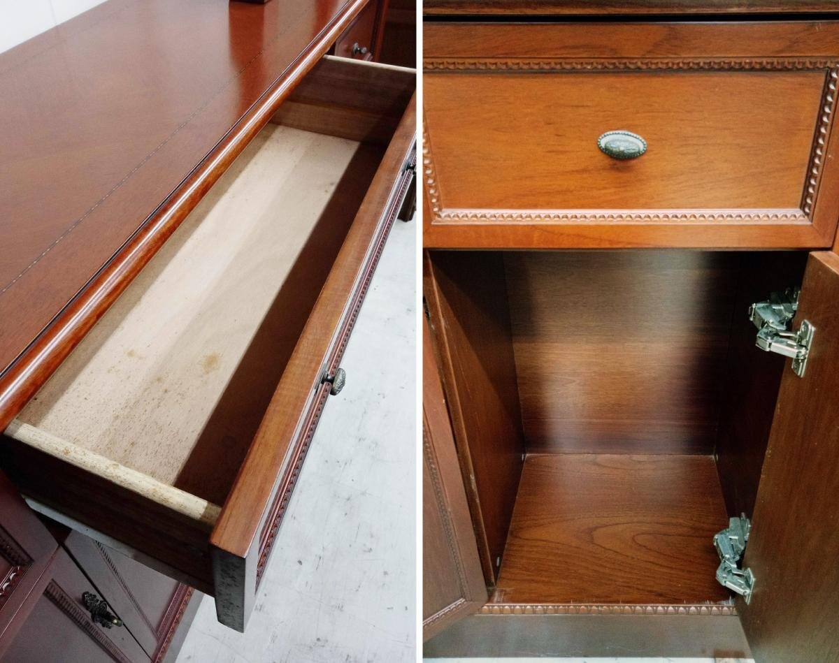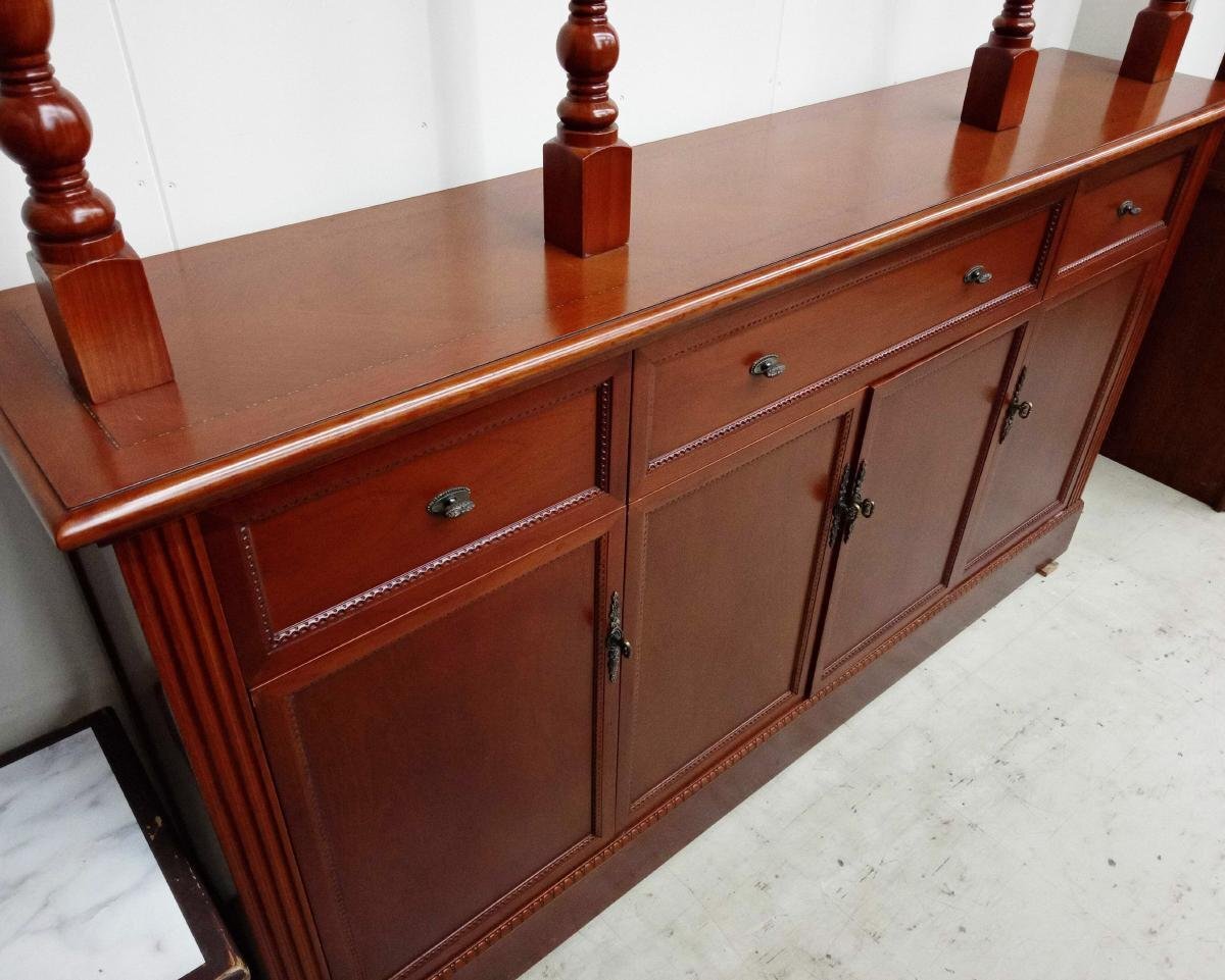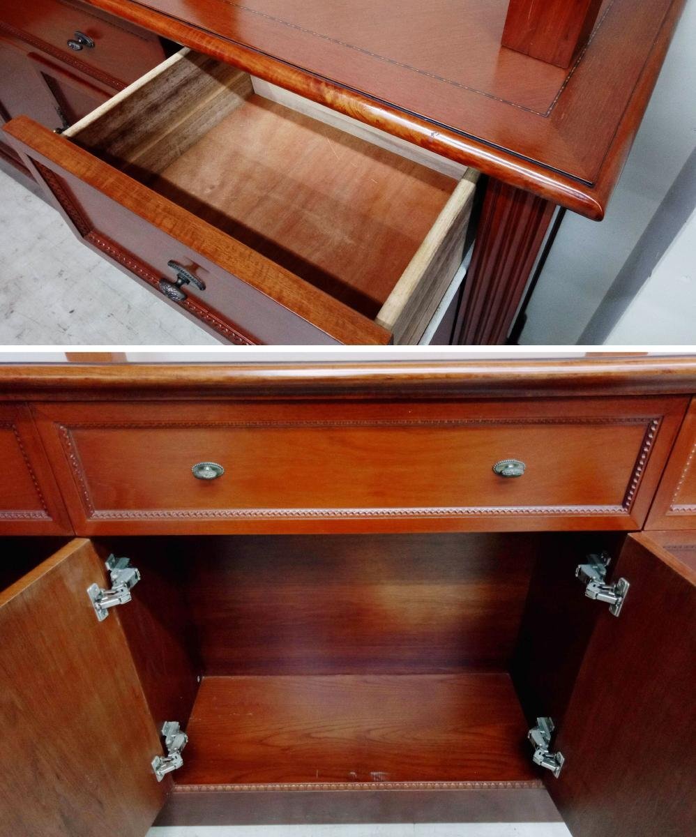 飾り棚が入荷致しました。 上部や背面などに傷、引き出し内部に汚れなど使用感がございます。 また、背面の数カ所にネジ穴が開けられている箇所がございます。 詳しい商品状態につきましては写真よりご確認ください。 サイズはW1950×D400×H2450mmとなっております。 大型商品のため直接引取り限定とさせて頂きます。 配送は出来ませんのでご来店の上でお引取りをお願い致します。 福島県二本松市のアメ商百貨店二本松店に在庫がございます。 営業時間内にご来店頂ければ、直接商品をご確認頂けます。 この機会に是非ご検討宜しくお願い致します。 【当アメNETでは】 出品する際の工具や業務用品、他の商品におきまして、清掃(吹き上げ)や動作確認をおこなっておりますが、 骨董・アンティークに関しては雰囲気を損なわないよう、最小限の清掃に留まらせて頂いております。 |