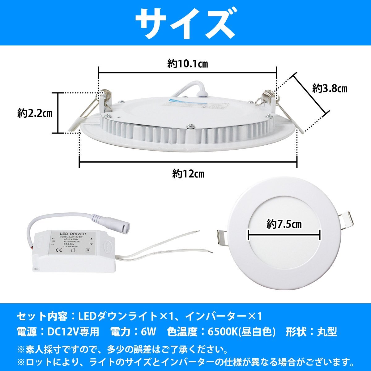 超薄型 LED パネル 6w 12V 照明 6500K ルームランプ 薄型照明 天井 LED照明 パネル照明 キャンピングカー 船 電気