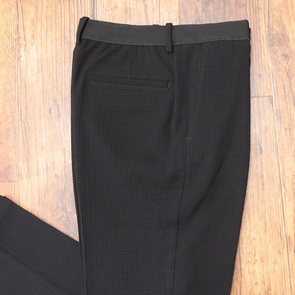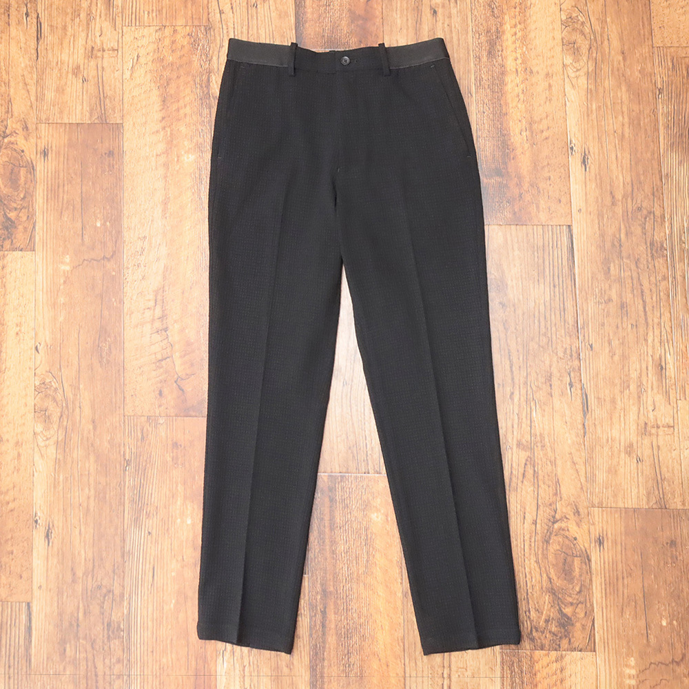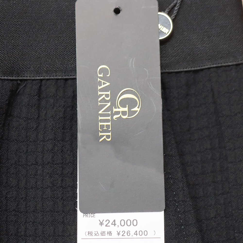 24AW/GARNIER/Sサイズ/スラックス パンツ 4024570021 格子柄ストレッチ ノータック ウエストゴム ガルニエ 新品/黒/ブラック/ma469/