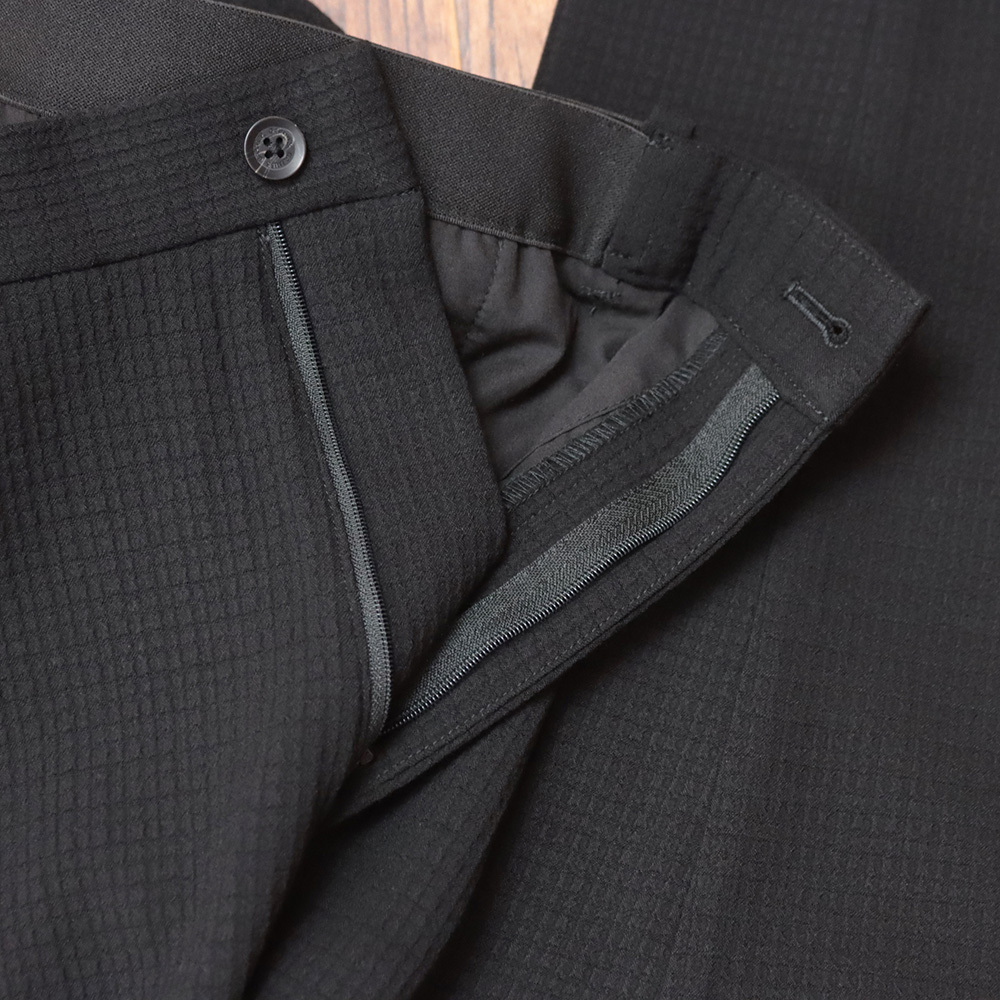 上品な格子柄デザインに、ポリエステル・レーヨン混紡素材を使用したスラックス。さらりとした肌触りと快適なフィット感を実現し、ポリウレタンを配合したストレッチ性により、日常の動きにしなやかに対応。さらにウエストはゴム仕様となっており、イージーな穿き心地ながらも、スマートなシルエットをキープします。幅広いシーンで活躍する、都会的で洗練された一本です。