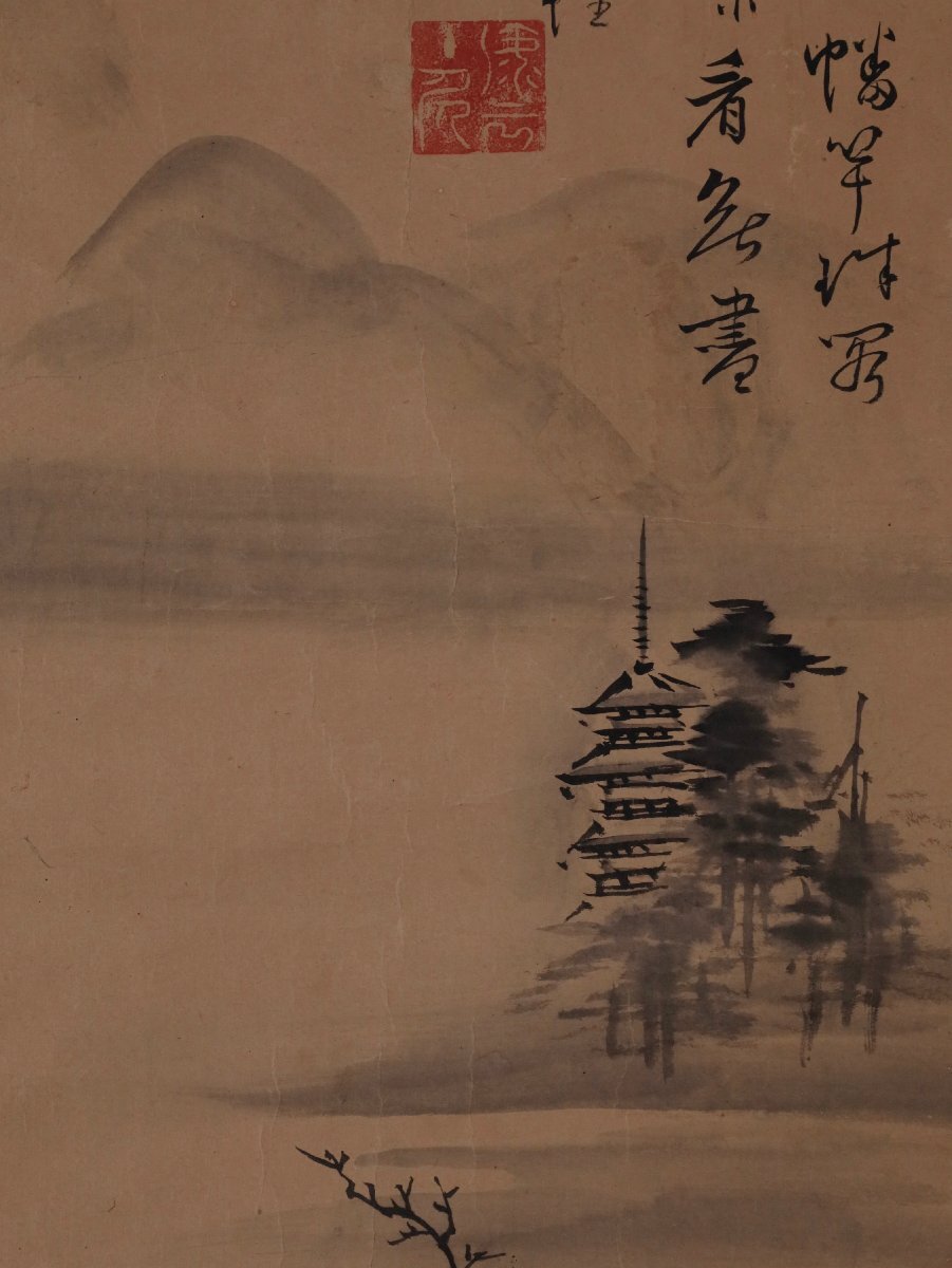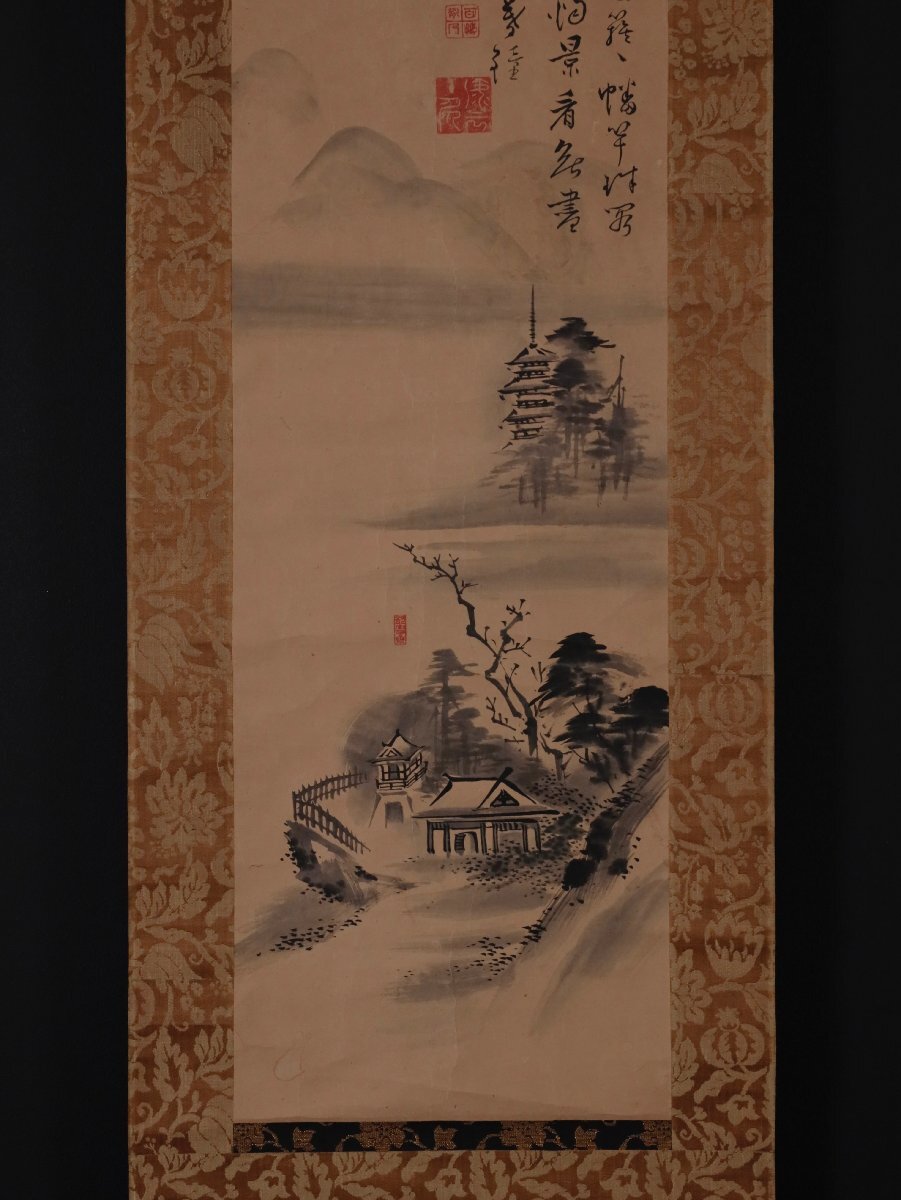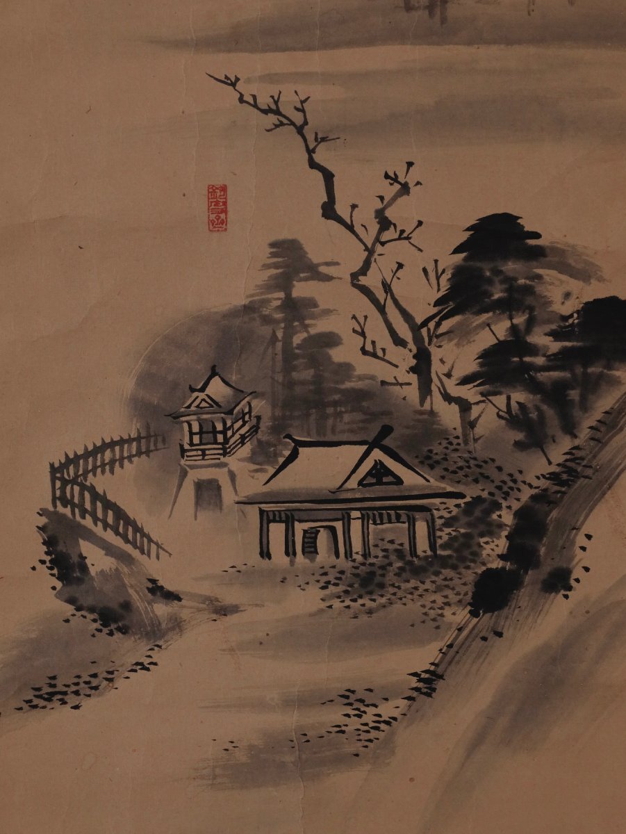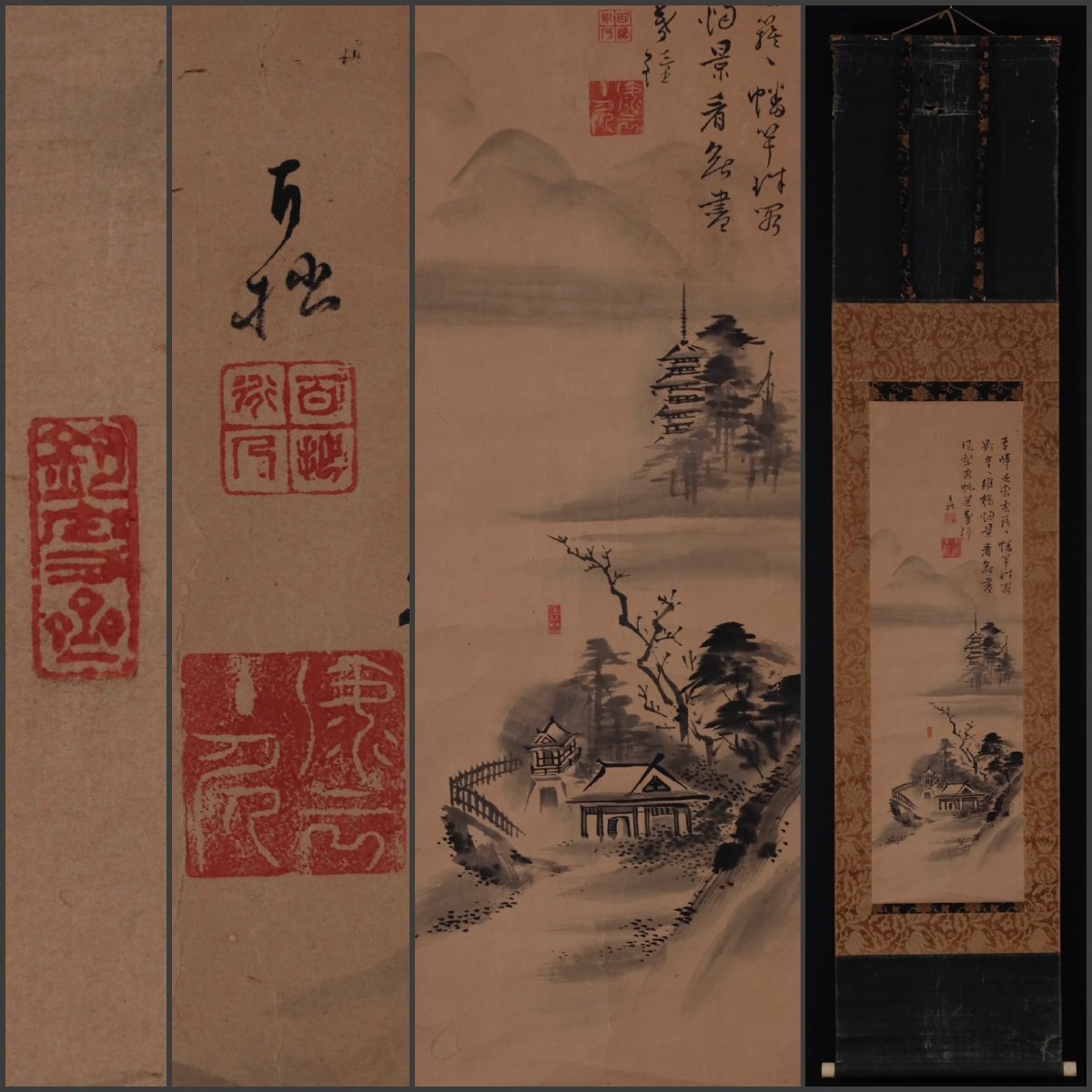 【模写】吉】12882 百拙元養 山水画賛 黄檗宗 法蔵寺 中国画 仏教 書 茶掛け 茶道具 古画 掛軸 掛け軸 骨董品