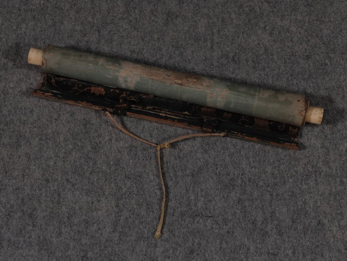 (例:シミ・シワ・剥脱・ヤブレ・ヤケ・変色・紐のイタミ・軸先の破損など)