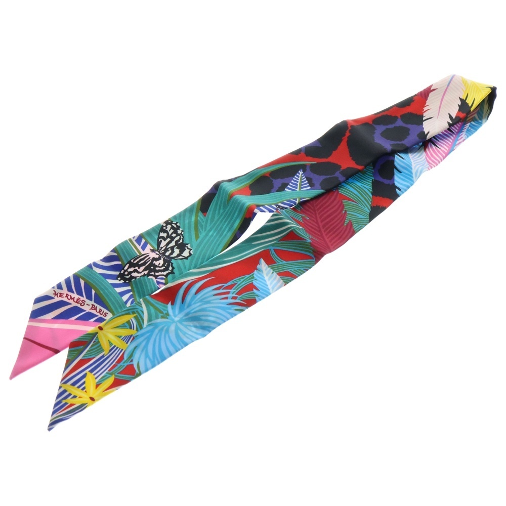 HERMES エルメス Twilly Scarf JAGUAR QUETZAL ツイリースカーフ ジャガーケツァール マルチ