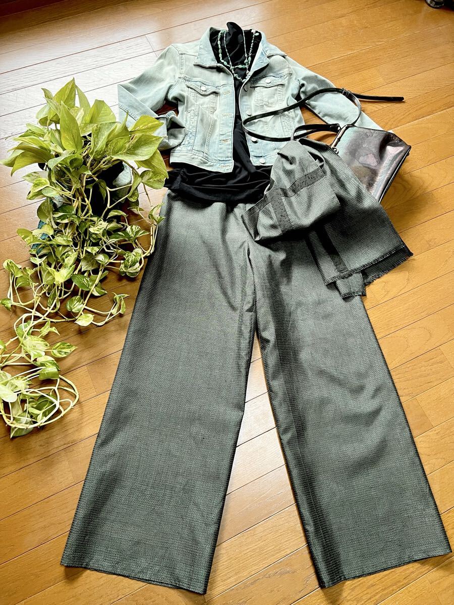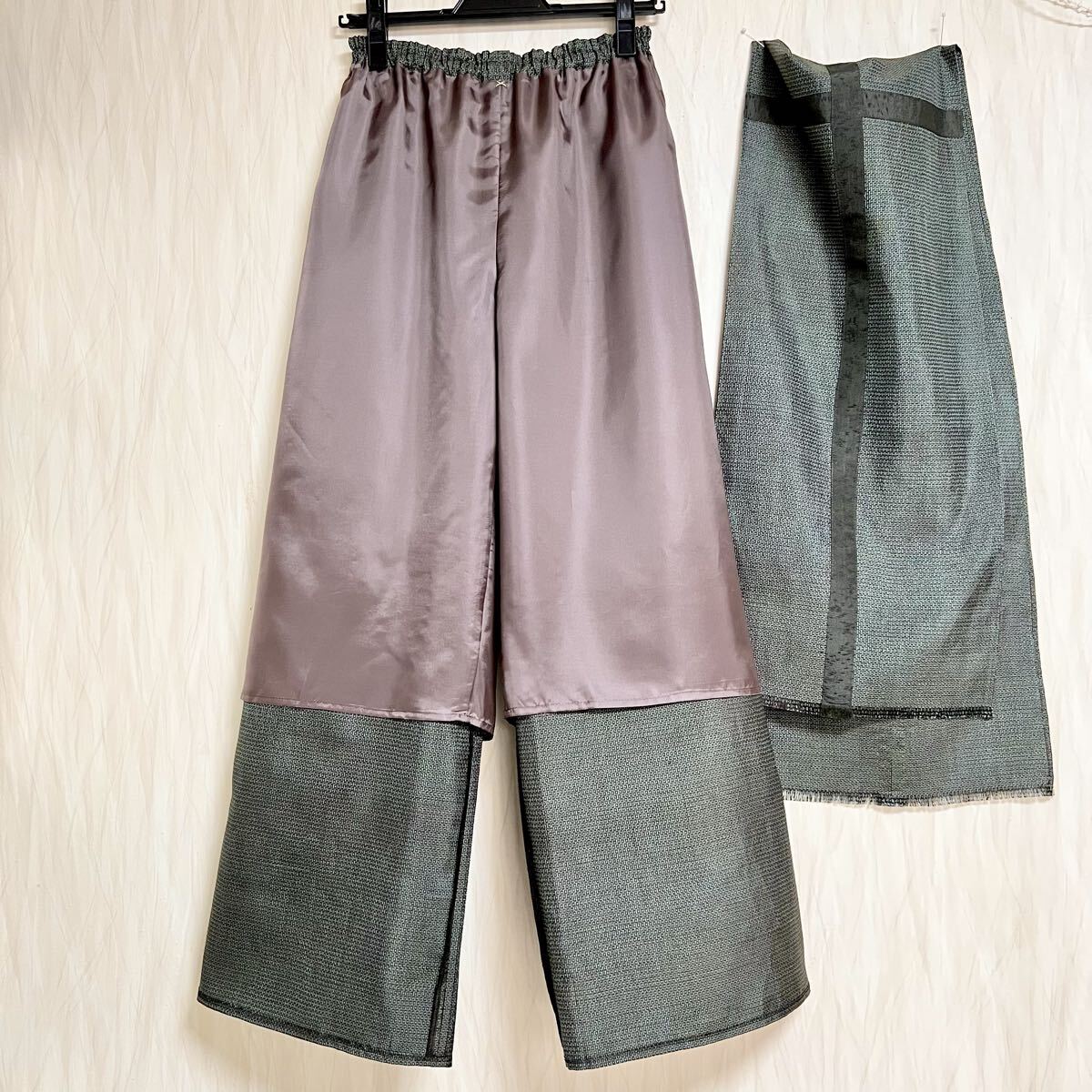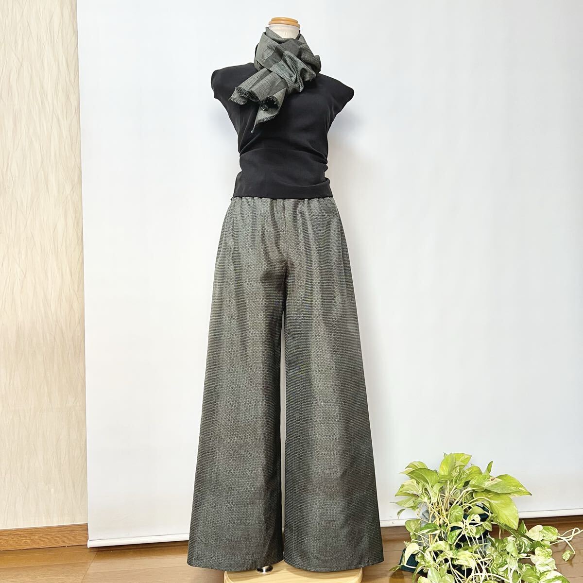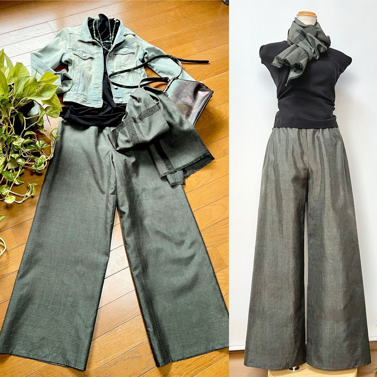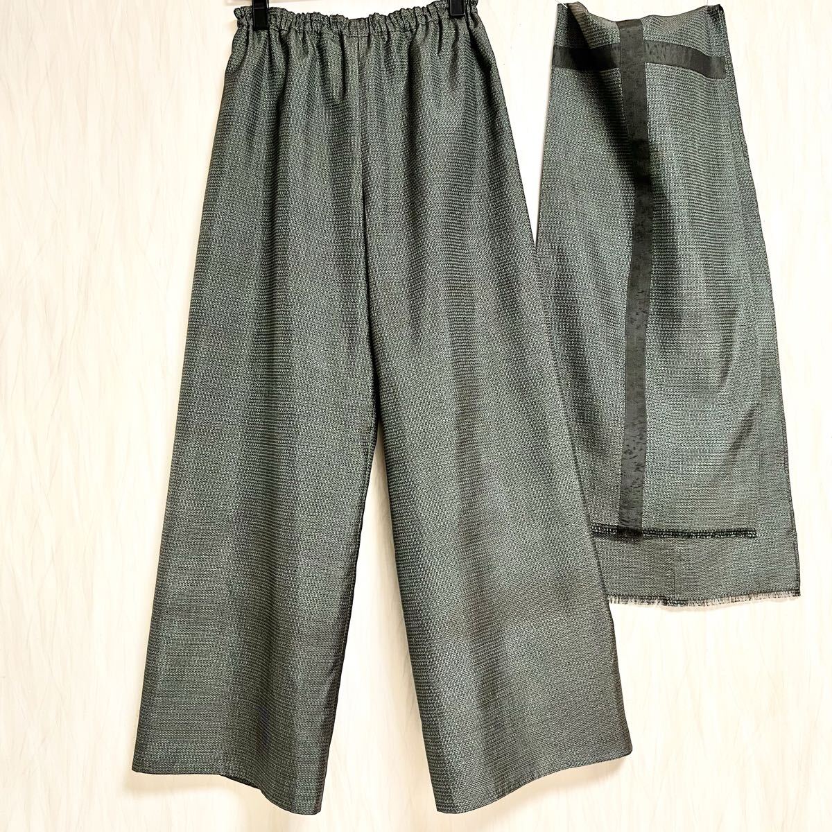 亀甲大島紬*股下71.5cmゆったりストレートパンツ+ストール*裏地付き*着物リメイク |
