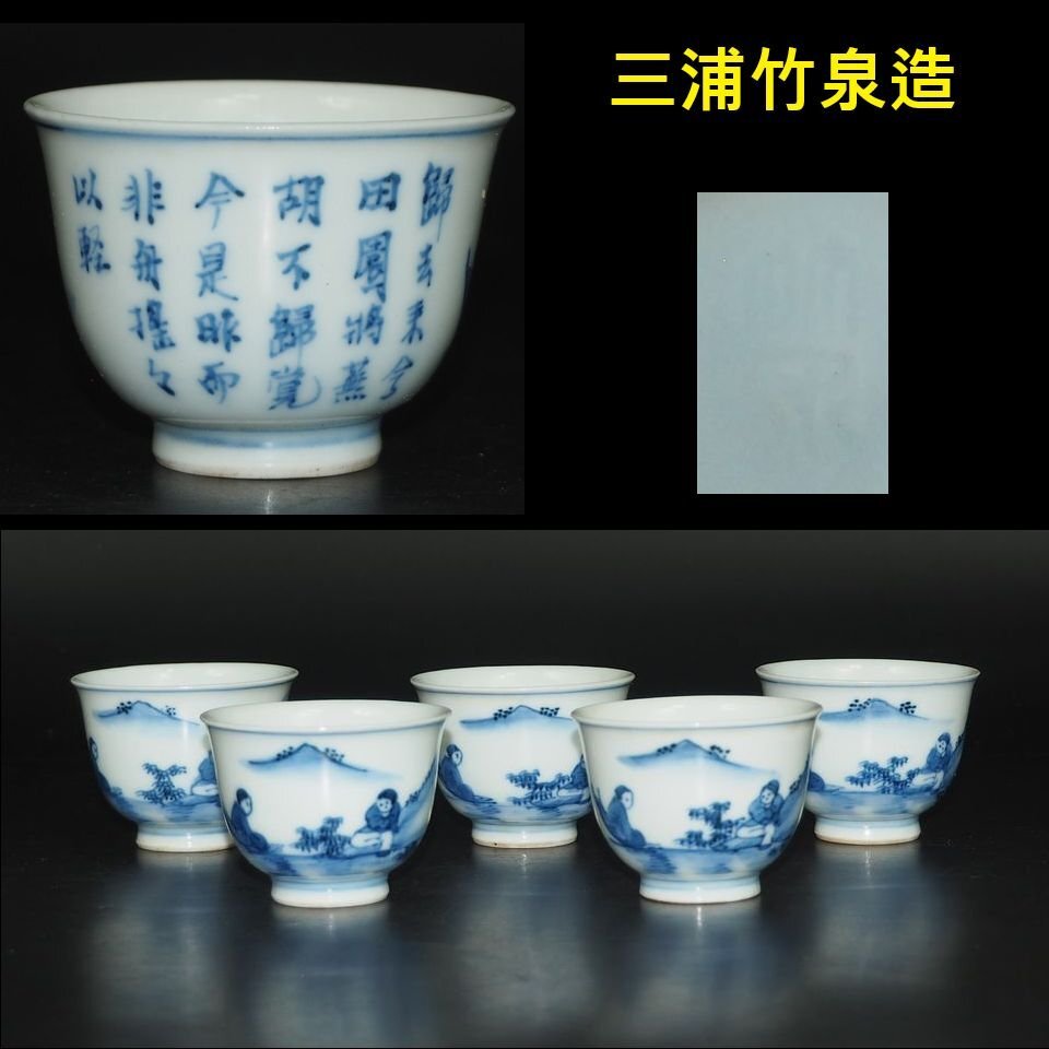 | 商品説明 | 高さ約 4.2cm 径約 5.5cm ご覧のように、二代 三浦 竹泉 造 青華山水漢詩図煎茶碗5客です。経年の汚れが見られます、状態がとてもよい、完品無傷です(一客縁に作成時の窯傷あり)、詳しくは写真でご確認ください。 |