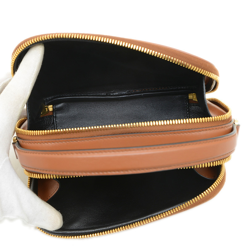 商品特徴 | 上質なレザーの落ち着いたブラウンカラーと、丸みを帯びたコンパクトなフォルムが特徴的なバッグです。フロントにはプラダの象徴的なトライアングルロゴがあしらわれ、洗練された印象を与えます。トップハンドルと取り外し可能なショルダーストラップにより、手持ちとしてもショルダーとしても使えるため、日常使いからフォーマルなシーンまで幅広く活躍します。 |