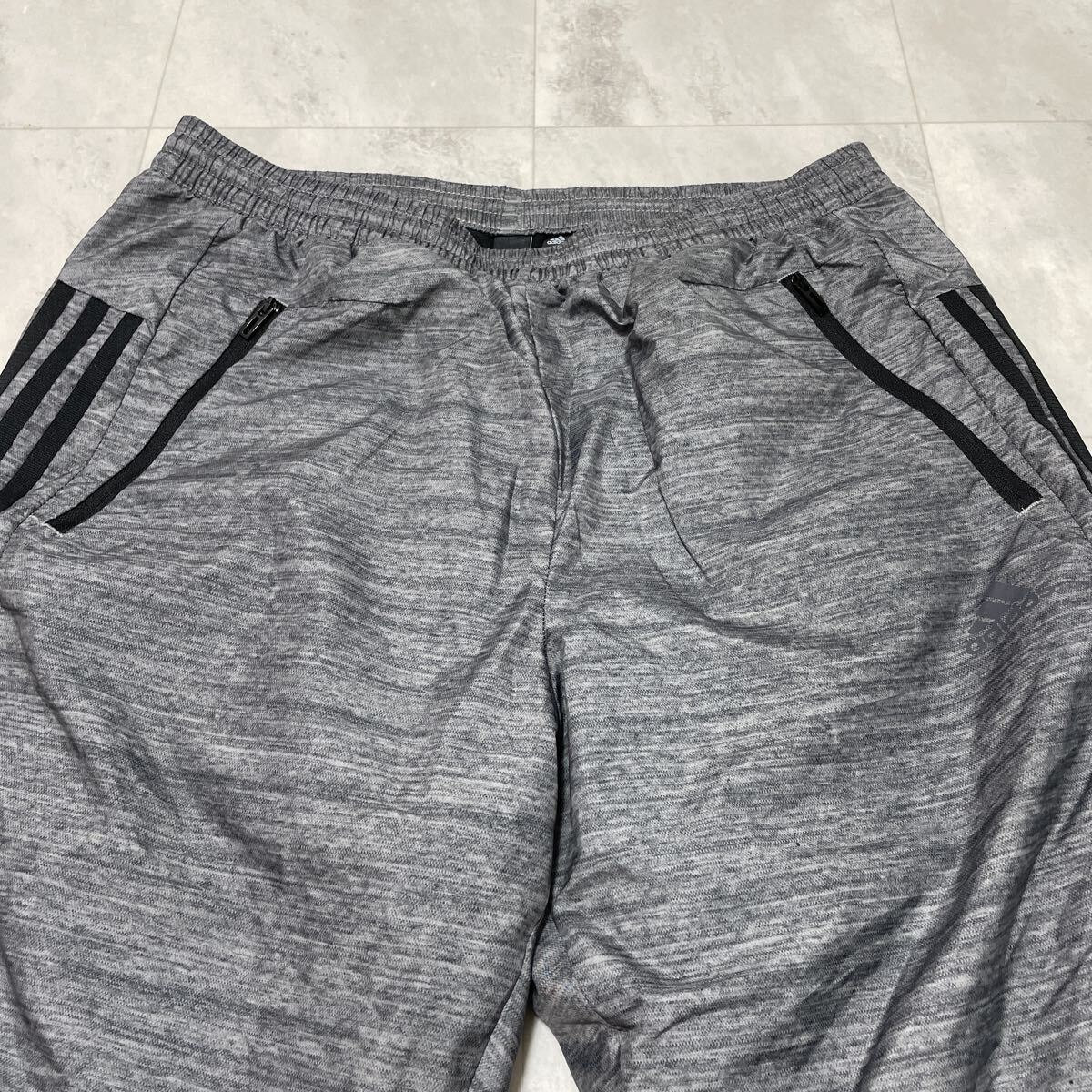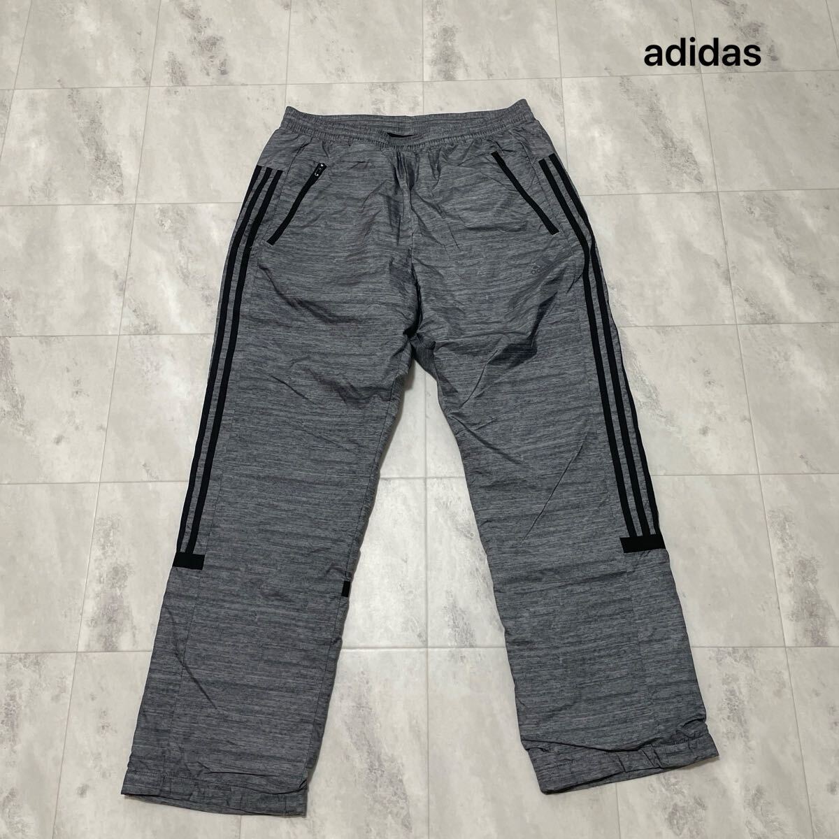 adidas アディダス nylon pants ナイロンパンツ テーパード アメカジ スポーツ ポケットジップ サイドスリーライン プリントロゴ グレー サイズXO 2XL 玉na1071