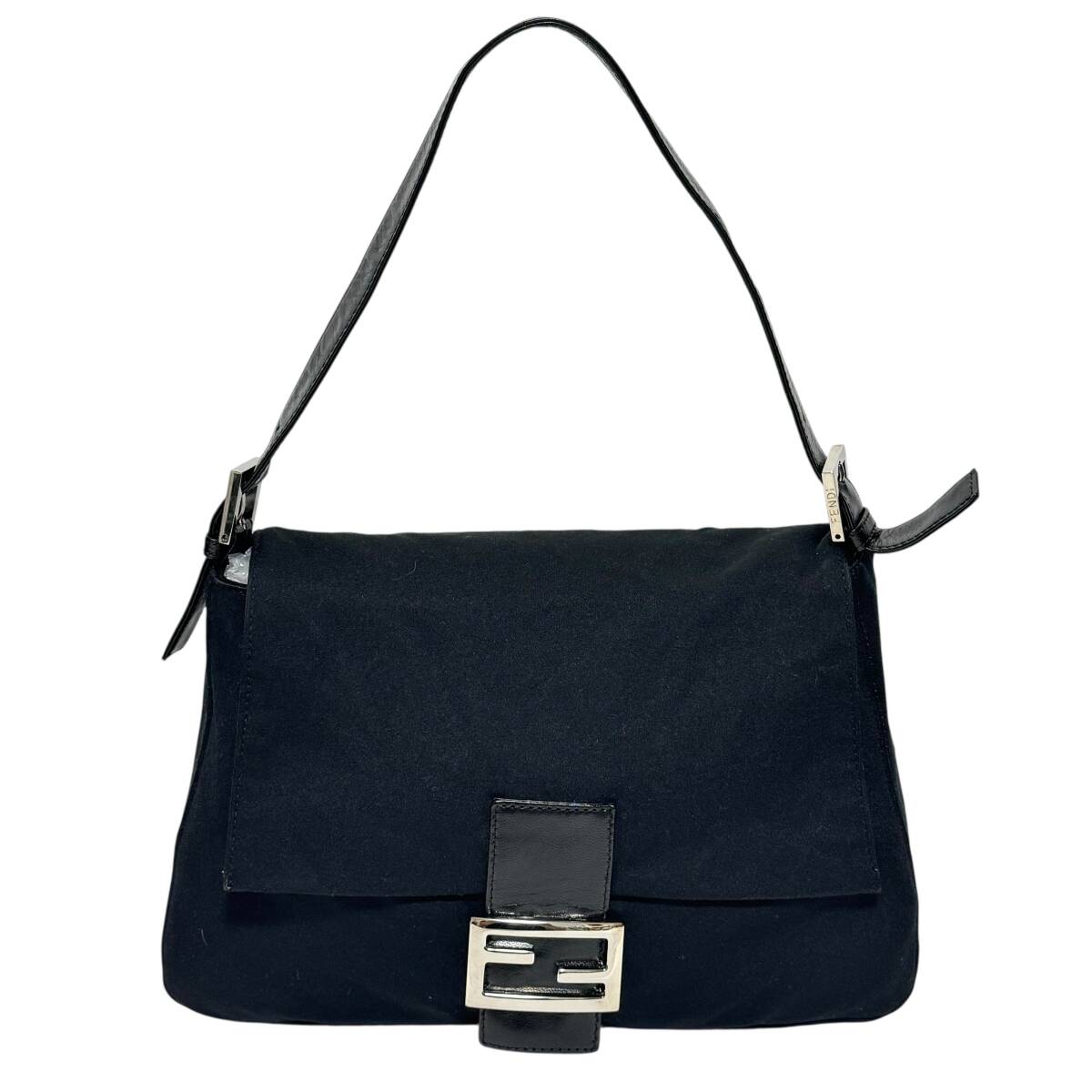 This vintage Fendi Mamma Baguette bag is a timeless classic, featuring the iconic FF logo buckle in silver-tone hardware. Made from soft black jersey with sleek leather accents, it offers a perfect balance of casual luxury and structured design. The flap closure adds elegance, while the roomy interior makes it a practical choice for everyday use. A highly sought-after collector’s item that blends iconic Y2K style with the enduring prestige of Fendi craftsmanship.