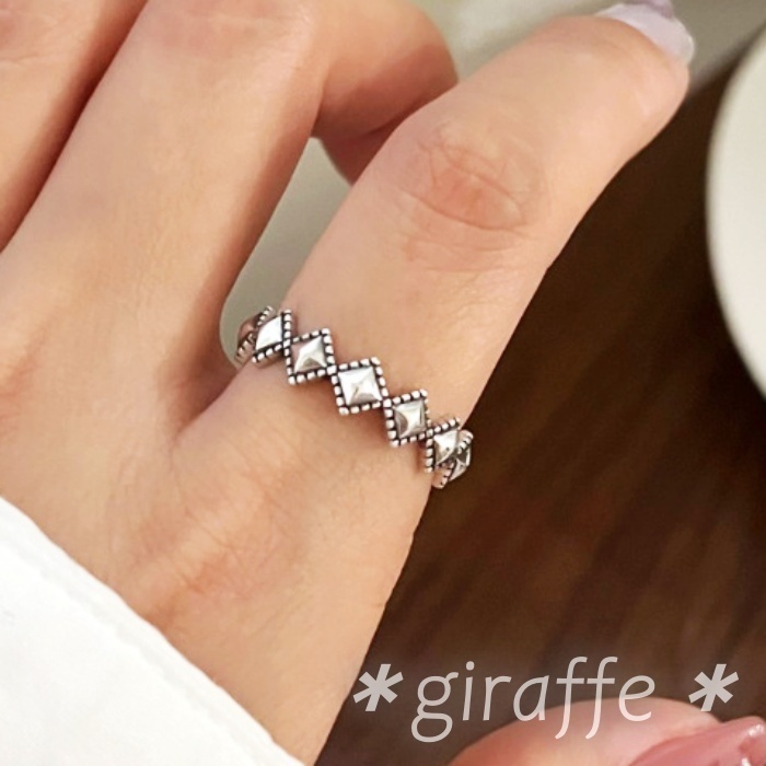 A821 匿名配送 指輪 レディース リング シルバー s925 フリーサイズ サイズ調節可能 レトロ ヴィンテージ 菱形 細い