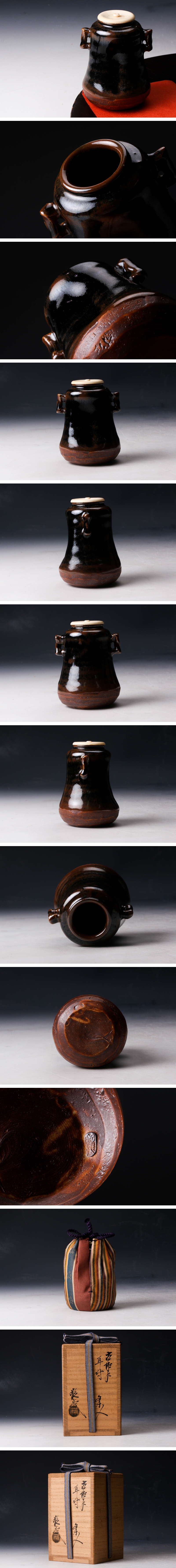 【佳香】山口錠鐵 古瀬戸耳付茶入 共箱 仕覆(四座金欄) 茶道具 本物保証