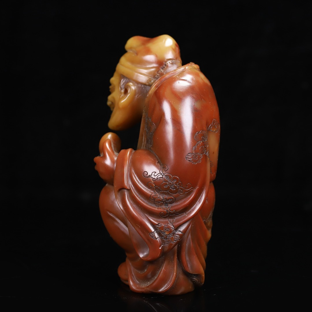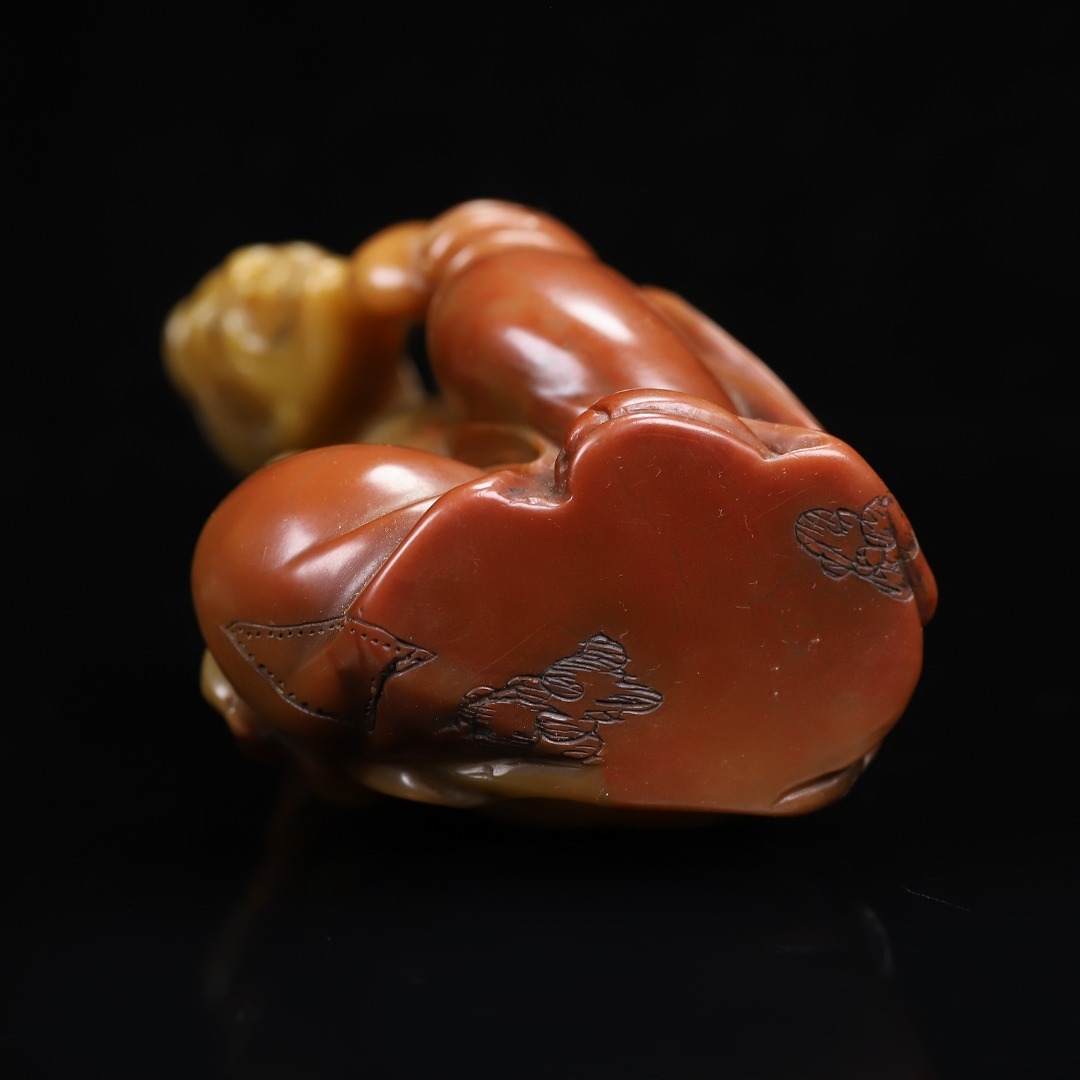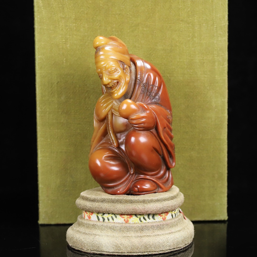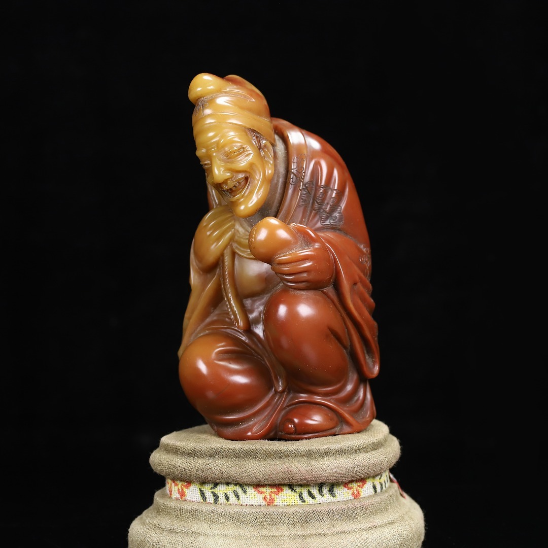 *珍品旧蔵* 【清代篆刻家 楊玉旋】 寿山石 朱砂紅かわいい彫 濟公 天然石 手彫 篆刻 極細工 中国古玩 骨董品 古美味 H49