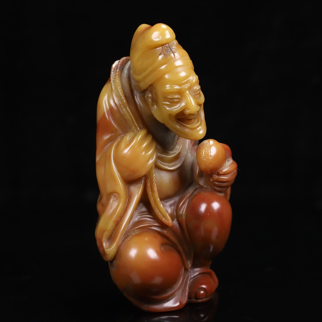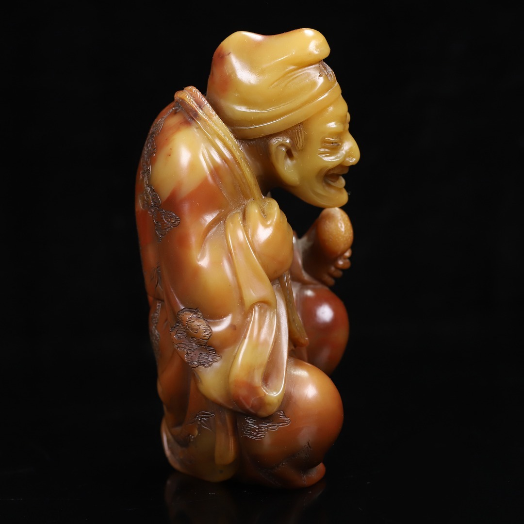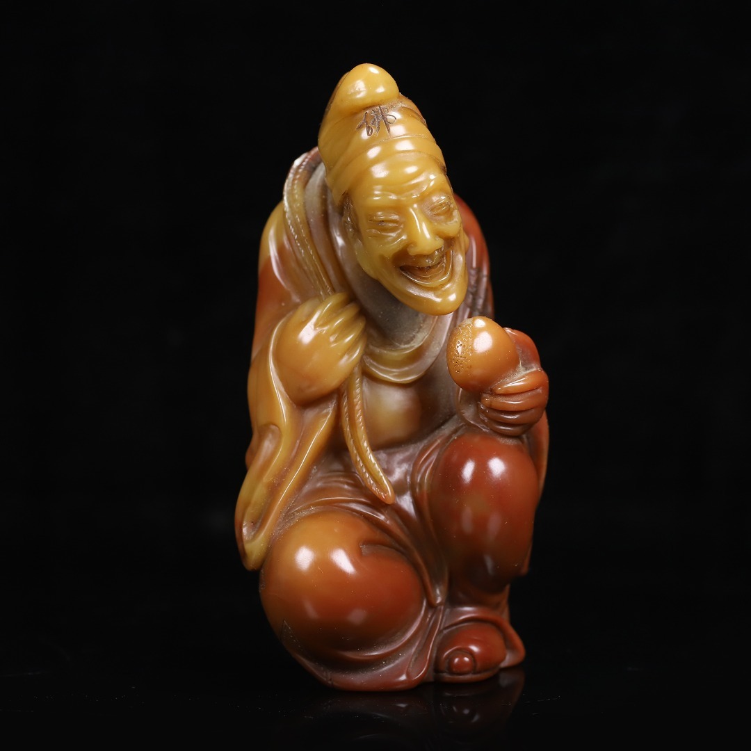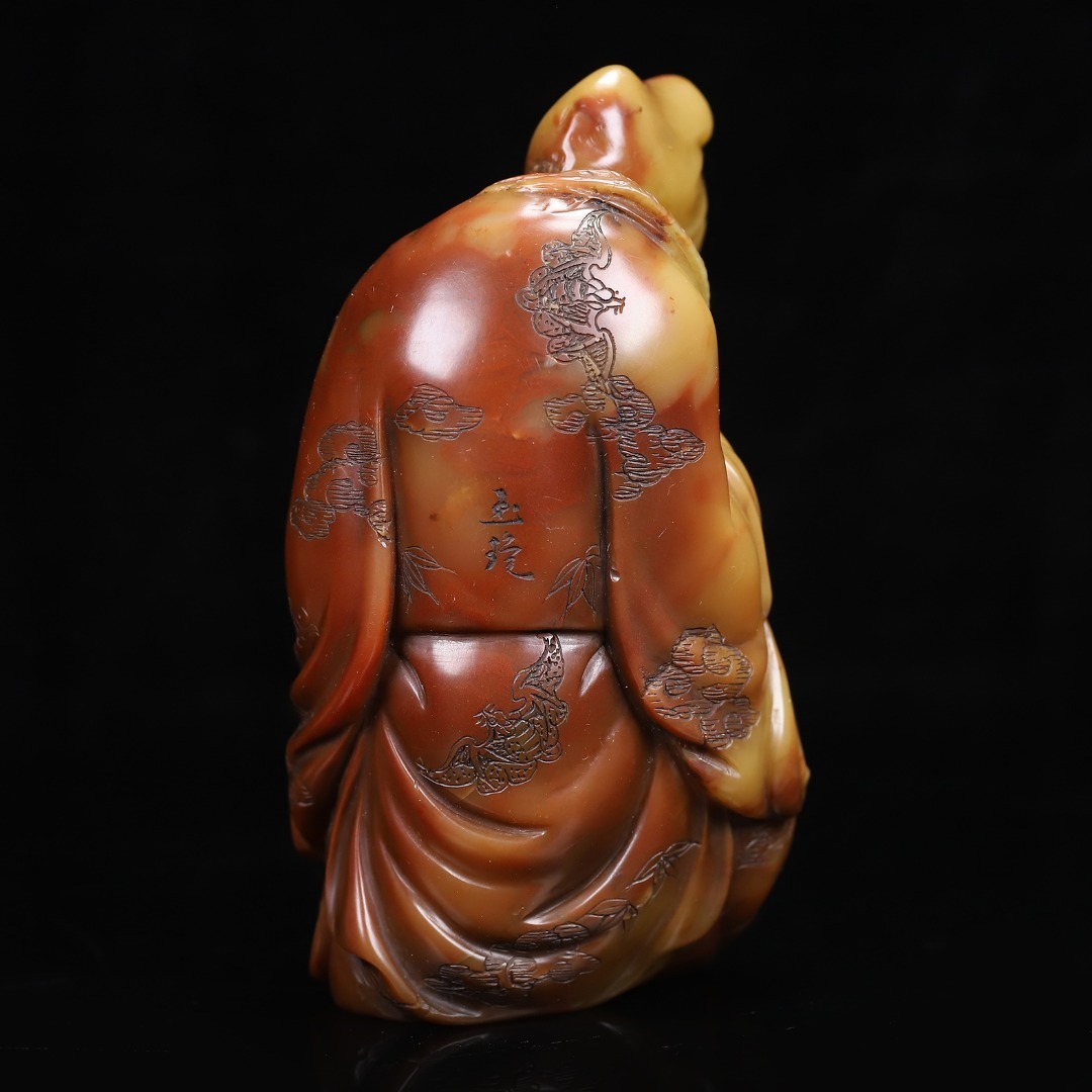 *珍品旧蔵* 【清代篆刻家 楊玉旋】 寿山石 朱砂紅かわいい彫 濟公 天然石 手彫 篆刻 極細工 中国古玩 骨董品 古美味 H49