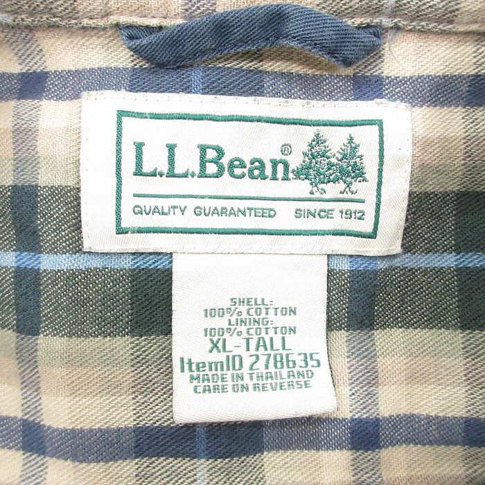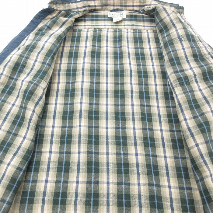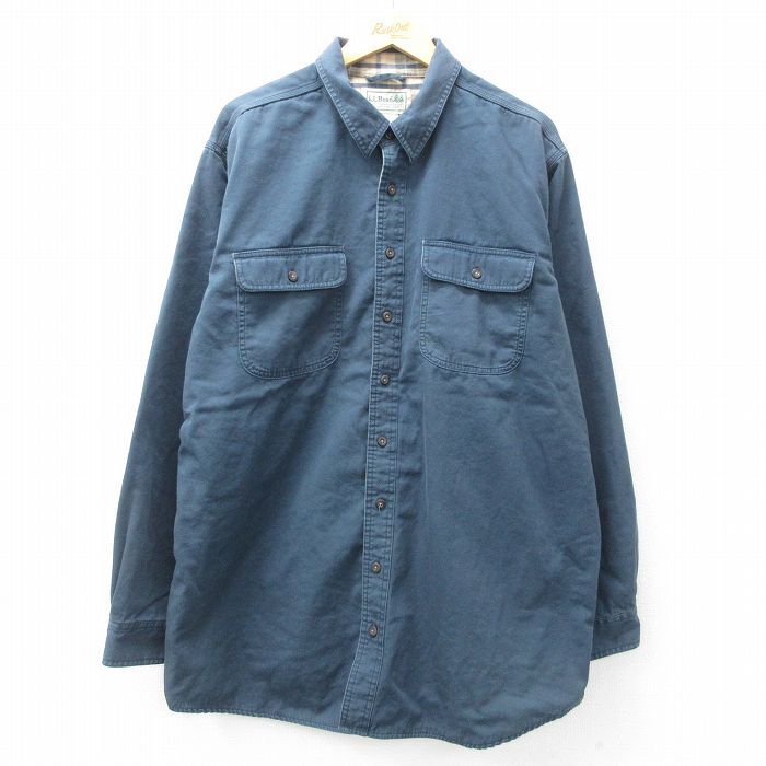【商品名】 XL★古着 エルエルビーン 長袖 ブランド シャツ メンズ 00年代 00s 大きいサイズ ロング丈 コットン 紺 内側フランネル
