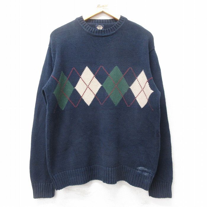 【商品名】 XL★古着 ドッカーズ 長袖 セーター メンズ アーガイル コットン クルーネック 紺