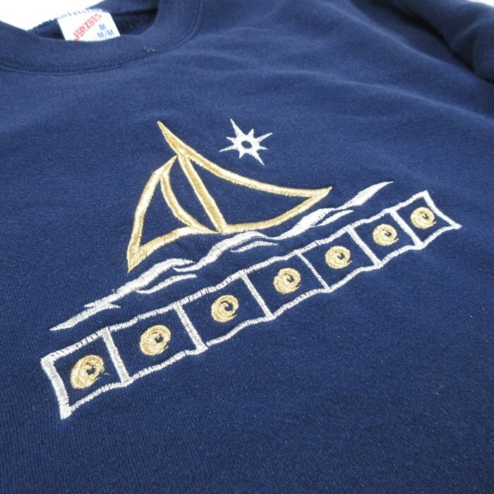【商品名】 S★古着 ジャージーズ 長袖 スウェット メンズ 90年代 90s ヨット 刺繍 クルーネック USA製 紺