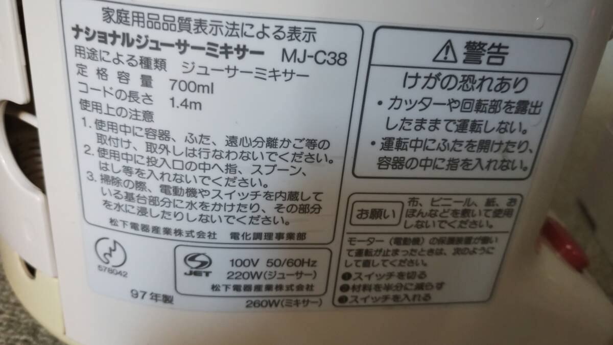 National ナショナル(Panasonic パナソニック) ジューサ-ミキサーです。